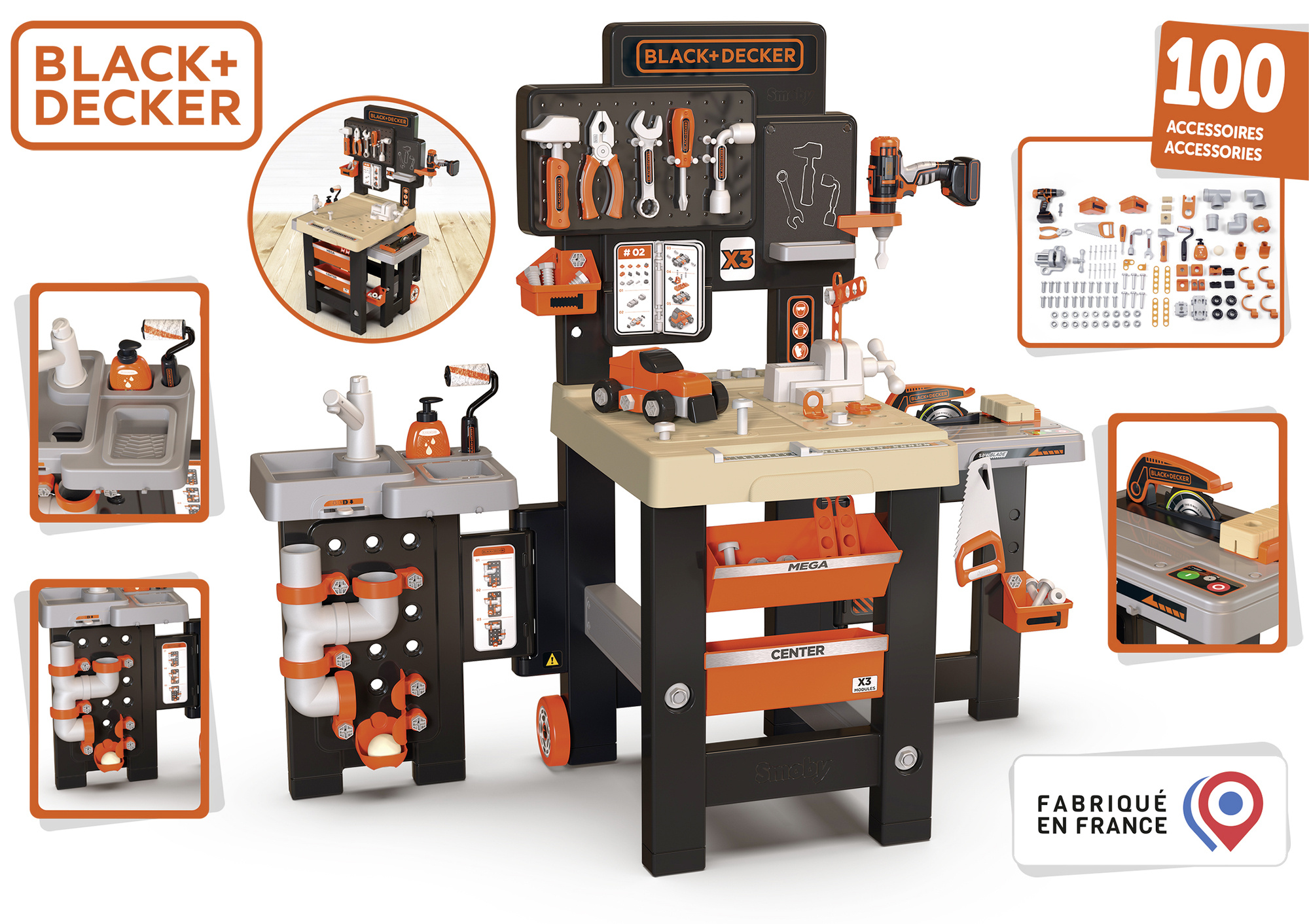 Smoby jest jedną z najlepiej rozpoznawalnych marek produkujących zabawki na świecie. Produkty Smoby cechuje przede wszystkim wysoka trwałość, najwyższa jakość, bezpieczeństwo, a także niezawodność. Marka sukcesywnie zapewnia radość i mnóstwo zabawy najmłodszym już od wielu pokoleń. Zestaw ten pochodzi z serii zabawek powstałej na licencji Black&Decker, dlatego też narzędzia wchodzące w jego skład są wiernymi kopiami faktycznie istniejących narzędzi tej marki.