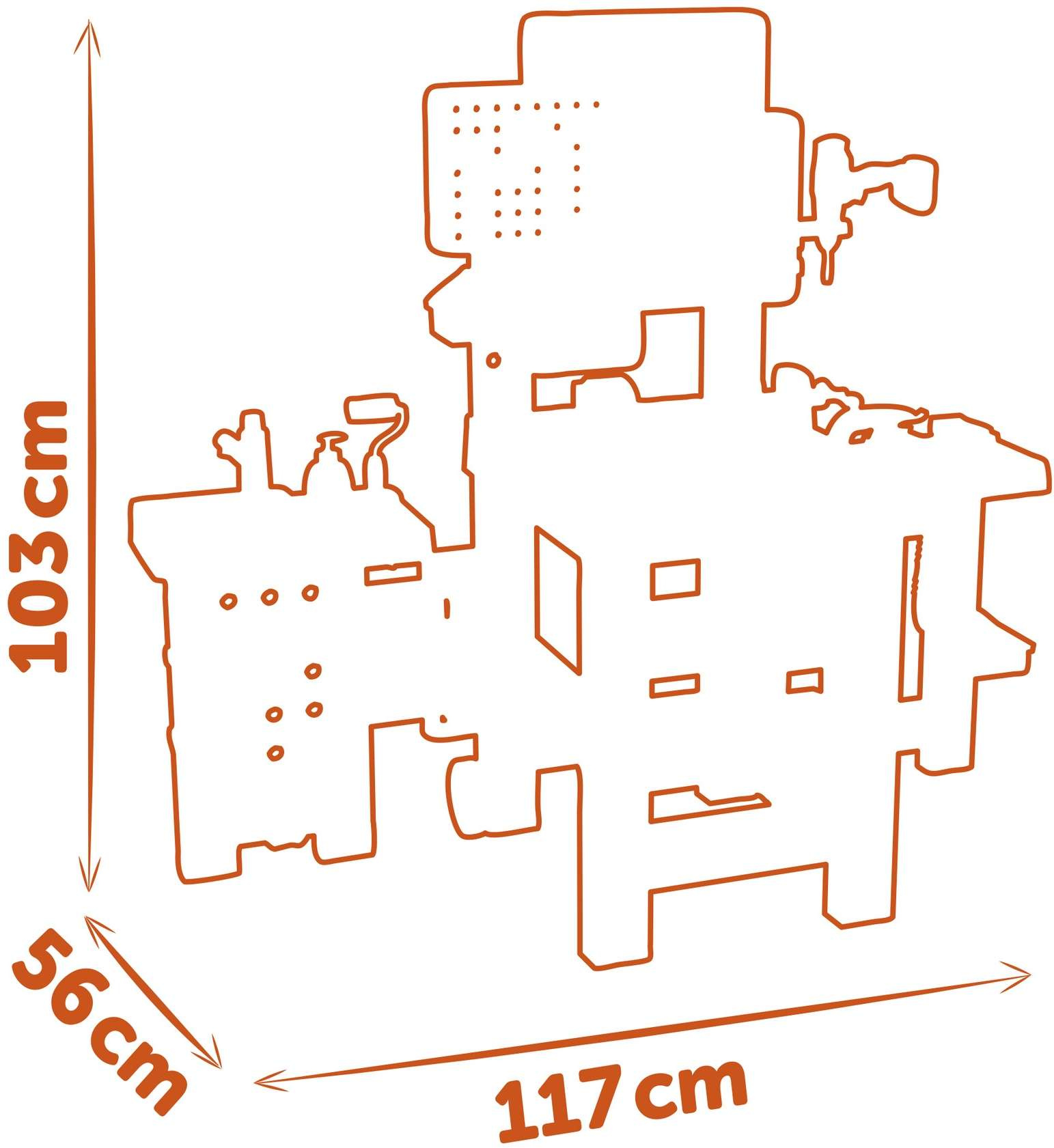 Dzięki dużemu centrum warsztatowemu dzieci mogą odkryć radość z majsterkowania. Mega warsztat oprócz klasycznego miejsca na narzędzia do młotkowania, wiercenia i wkręcania, oferuje dodatkowe stanowisko do malowania i hydrauliki, a także obszar na piłę.