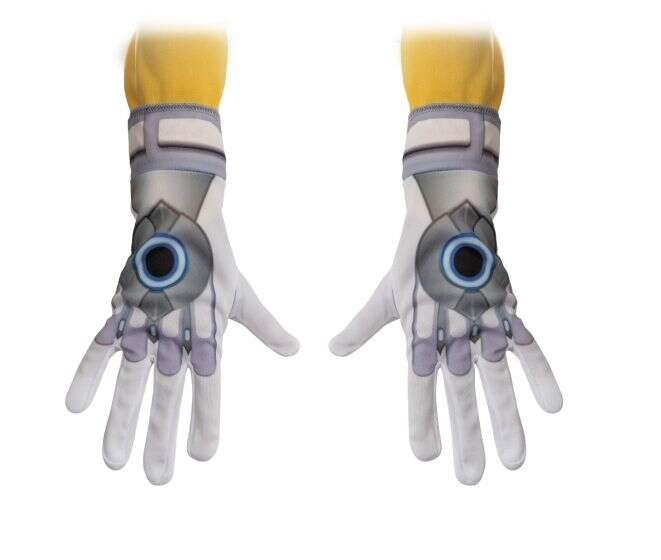 - Niebiesko-żółty kombinezon z oczami i elementami ozdobnymi oraz rękawiczki to idealny zestaw dla fana postaci z gier i filmów.