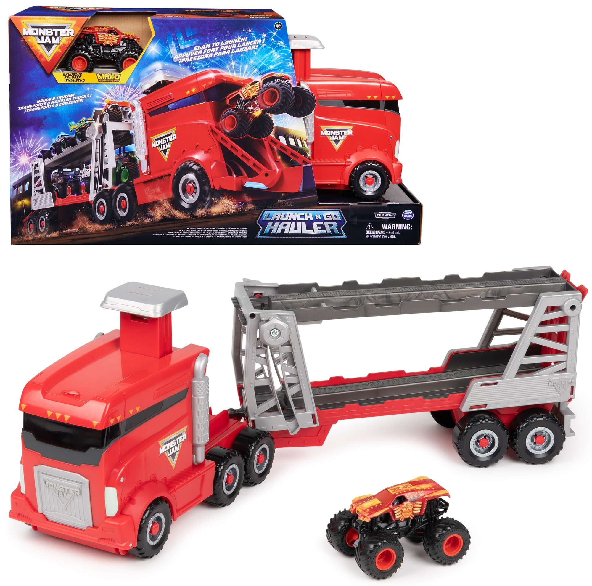 Monster Jam zestaw z transporterem i pojazdem Launch n' Go Hauler Max-D