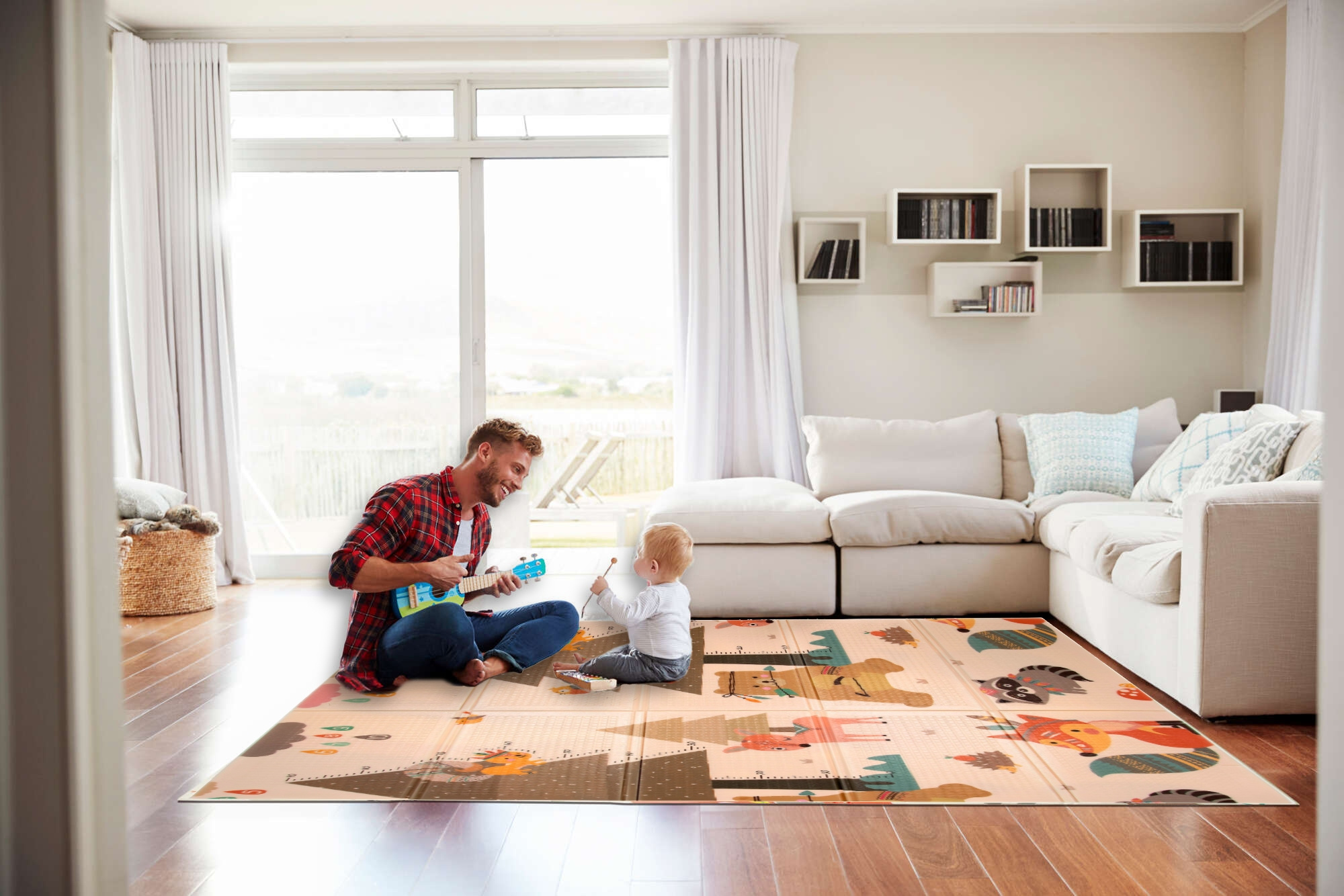 Dwustronna Składana Mata Edukacyjna z pianki XPE Podłogowa Bezpieczna 120x180 góry zwierzęta Humbi