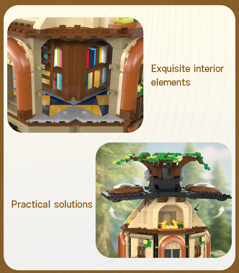 Zestaw składa się z 1808 elementów i umożliwia samodzielne złożenie wyjątkowego modelu przedstawiającego bibliotekę znajdującą się w domku na drzewie.