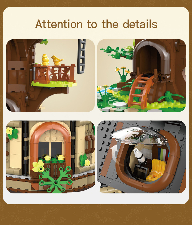 Model jest pełen detali, dzięki czemu wygląda bardzo realistycznie. Drzewo znajduje się na polance otoczone jest kwiatami. Do wnętrza pnia prowadzi drabinka, powyżej drzwi znajduje się niewielki taras, na którym można zaobserwować ptaki, nad dachem znajdują się gałęzie z liśćmi.