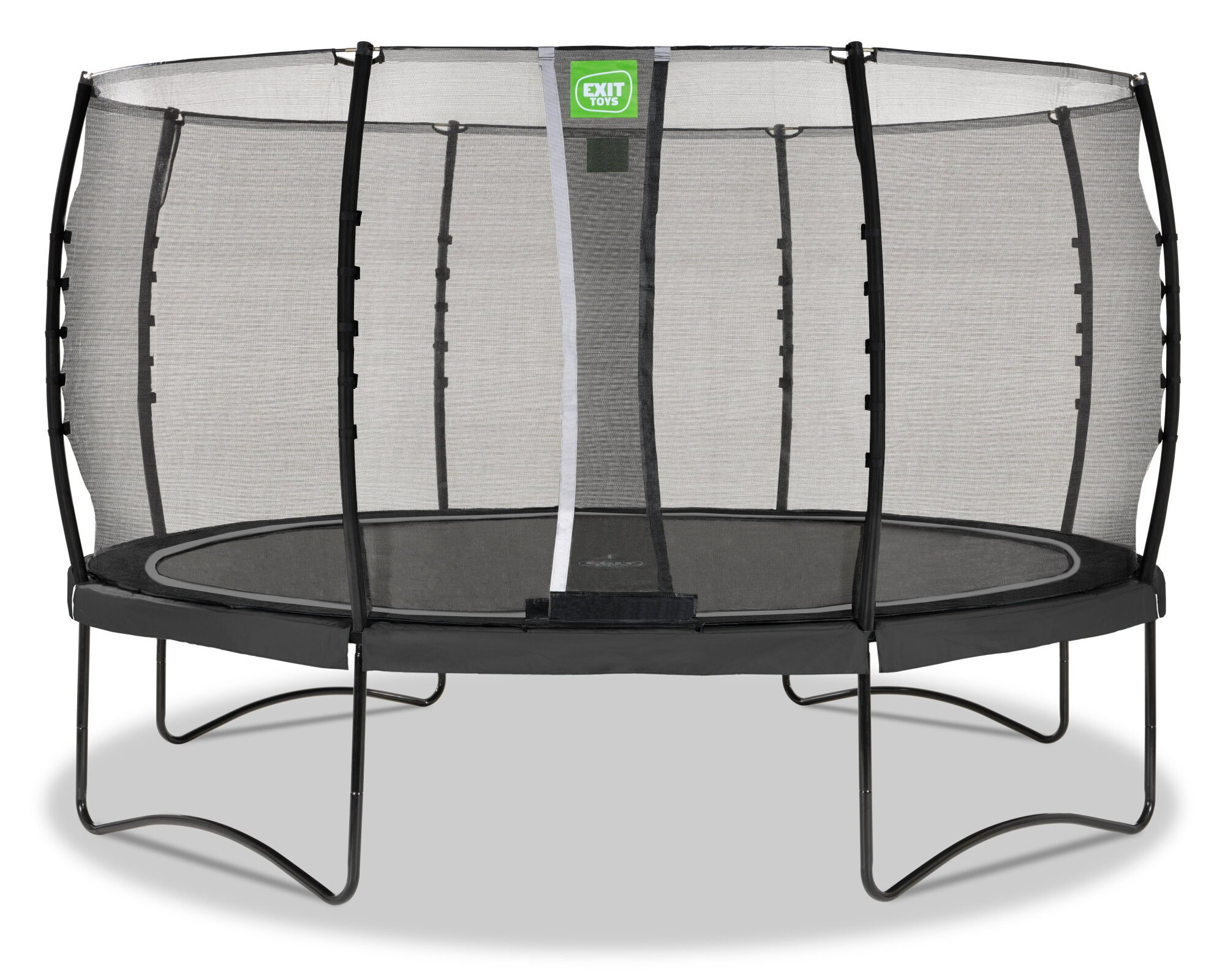 - Trampolina EXIT Allure Classic ø427cm to okrągła trampolina z czarną krawędzią ochronną i siatką zabezpieczającą. Posiada ramę ocynkowaną i malowaną proszkowo oraz nóżki w kształcie litery W.