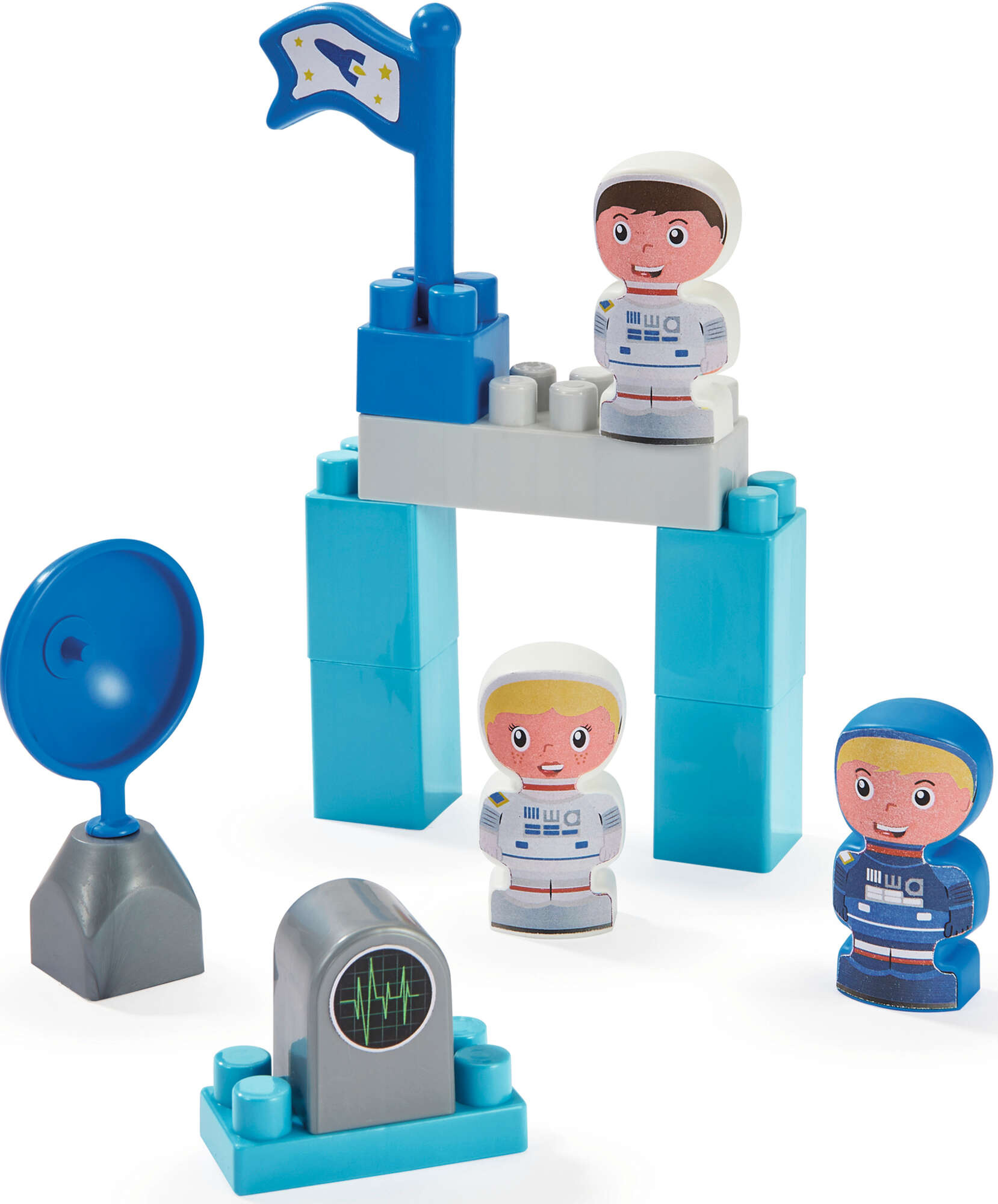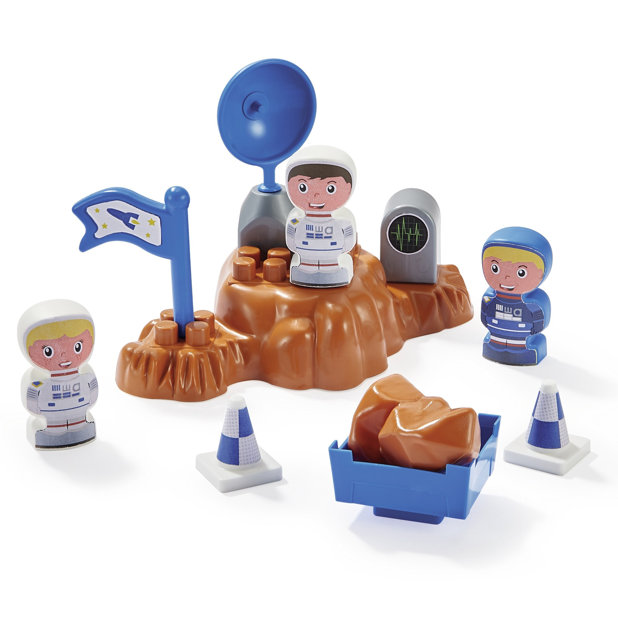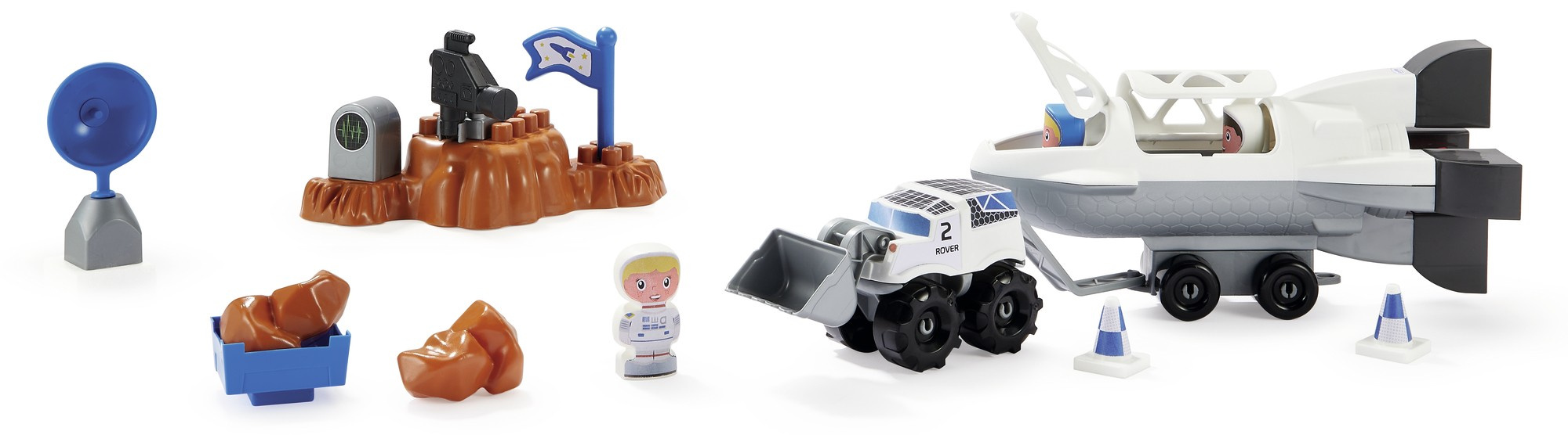 W zestawie znajdują się klocki pozwalające na złożenie rakiety oraz trzech pojazdów, a także naklejki, które pozwolą udekorować i spersonalizować pojazdy oraz rakietę. Oprócz klocków znajdują się figurki astronautów i akcesoria.