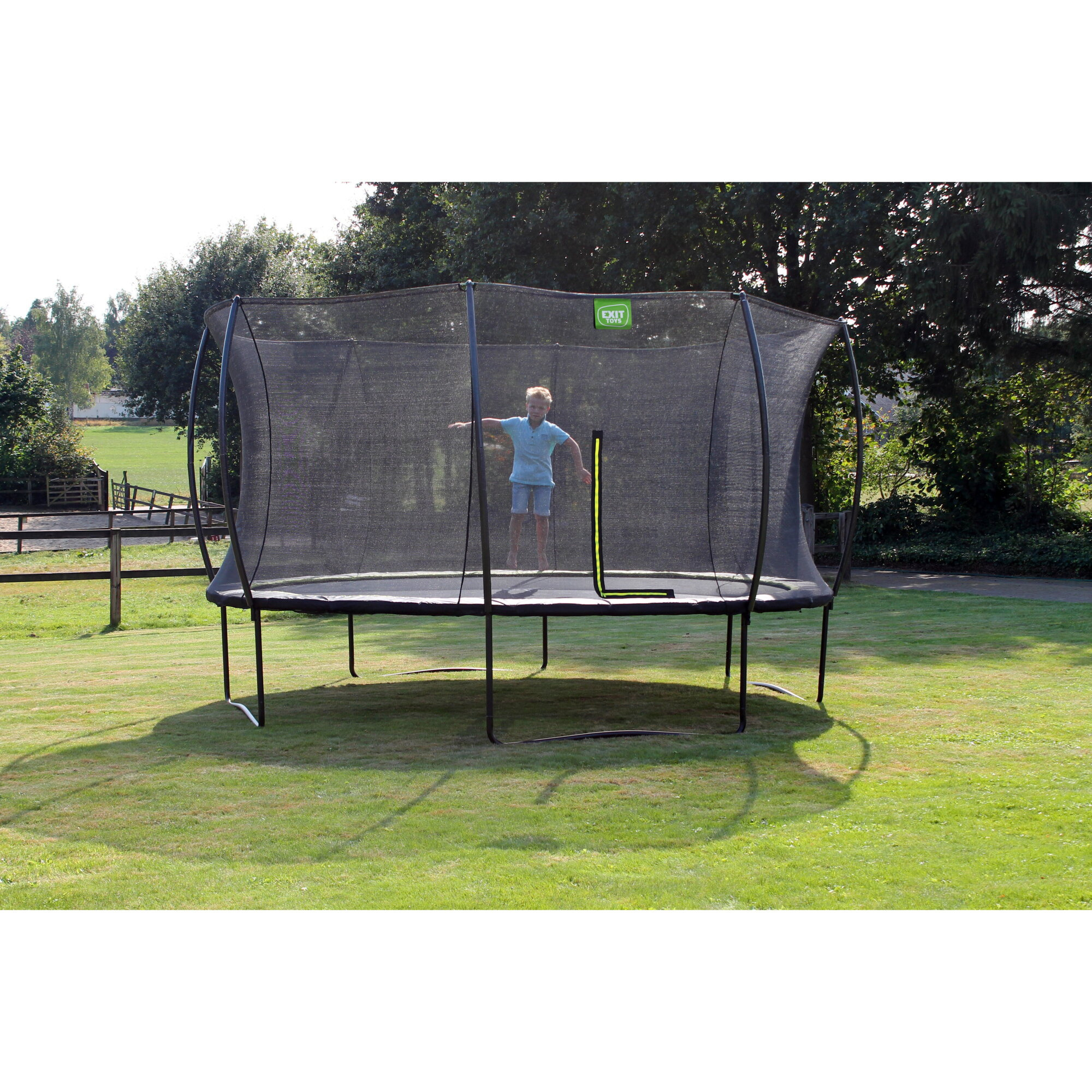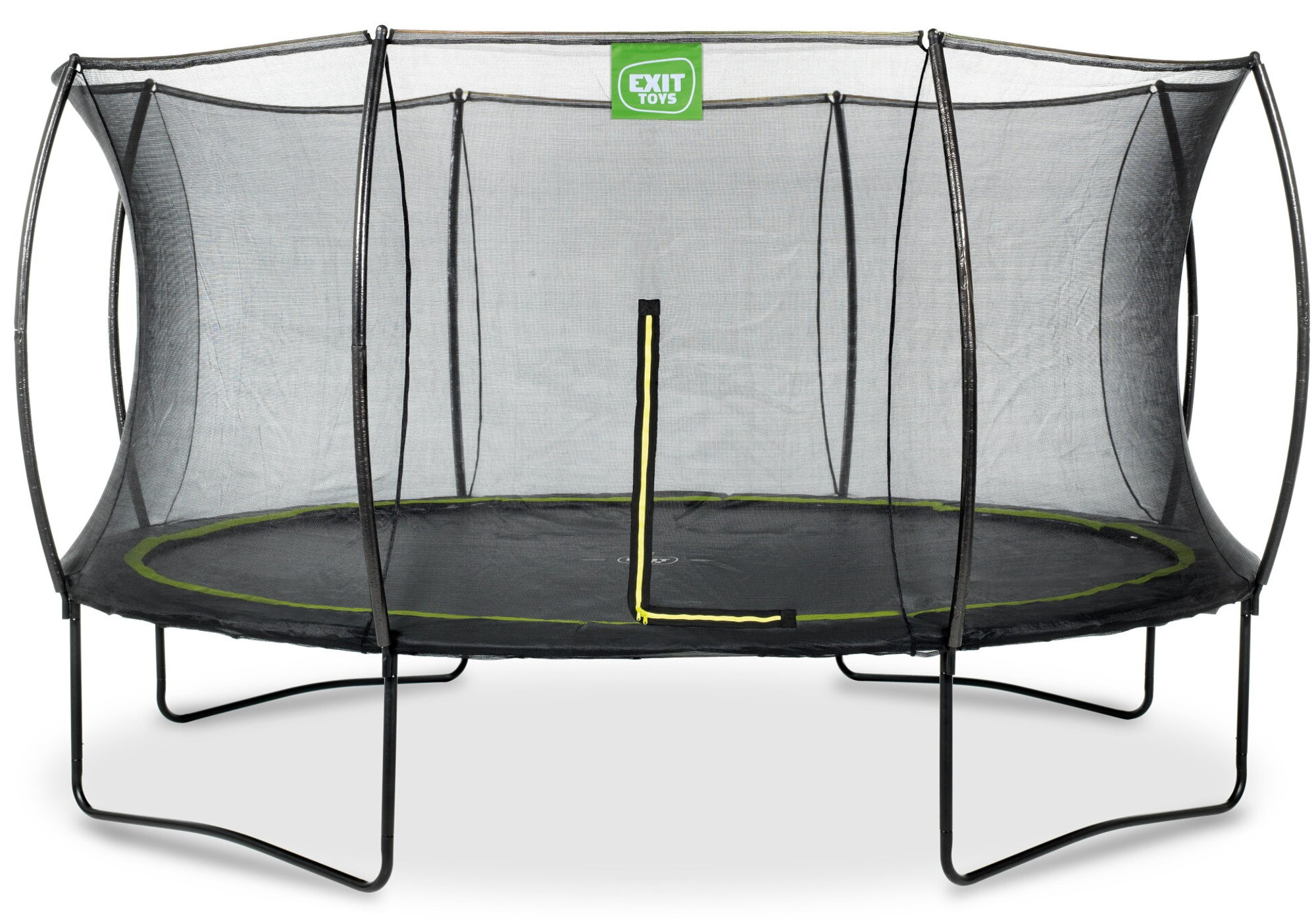 - Trampolina EXIT Sillhouette o średnicy 427 cm to okrągła trampolina na nóżkach z siatką zabezpieczającą. Gwarantuje bezpieczne skakanie dzięki systemowi EXIT Foot Protection (FPS).