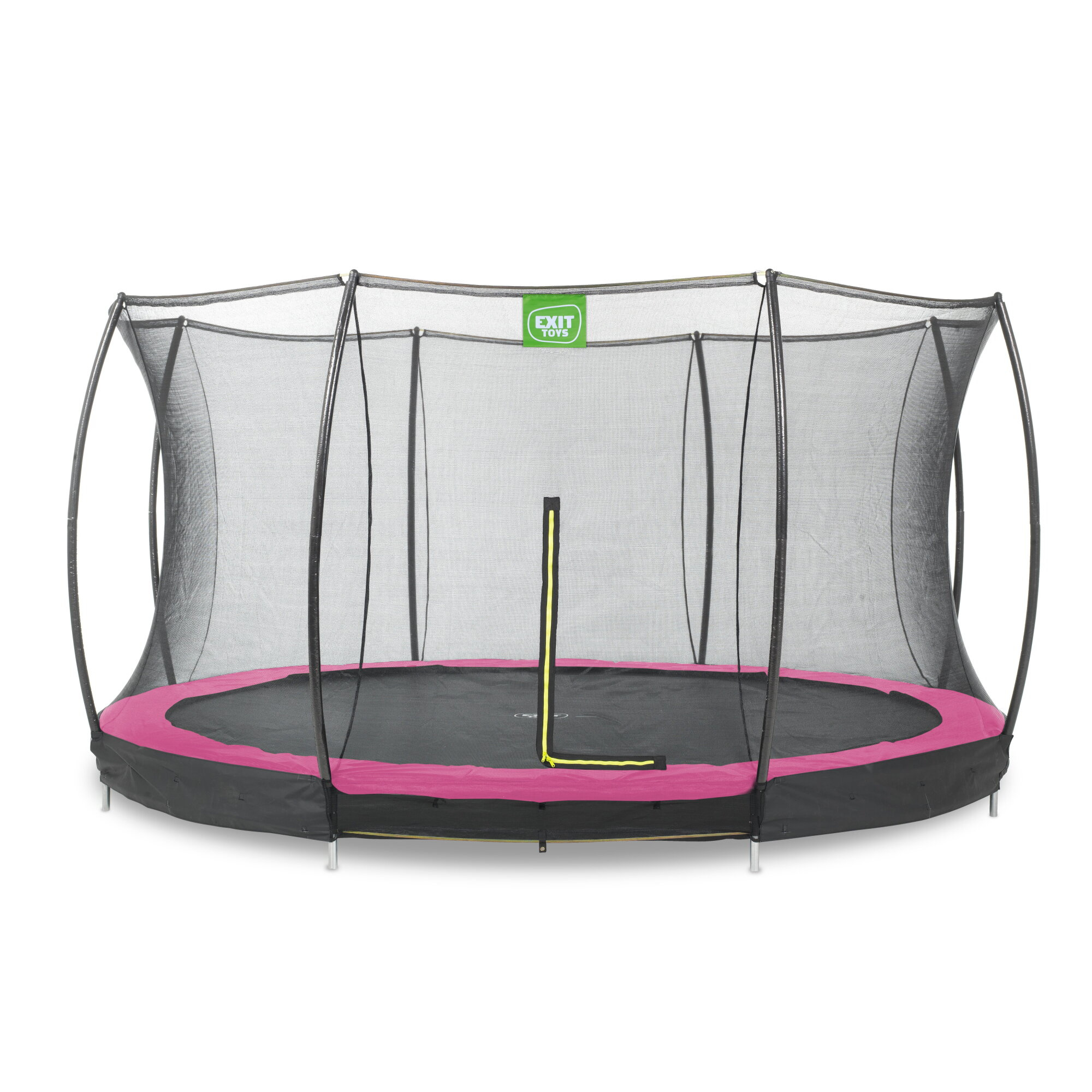 - Trampolina EXIT Sillhouette o średnicy 366 cm to okrągła trampolina z różową krawędzią ochronną i siatką zabezpieczającą. Jej zamontowanie w ogrodzie jest proste, wystarczy wykopać dół, w którym ma stanąć trampolina i umieścić ją tam.