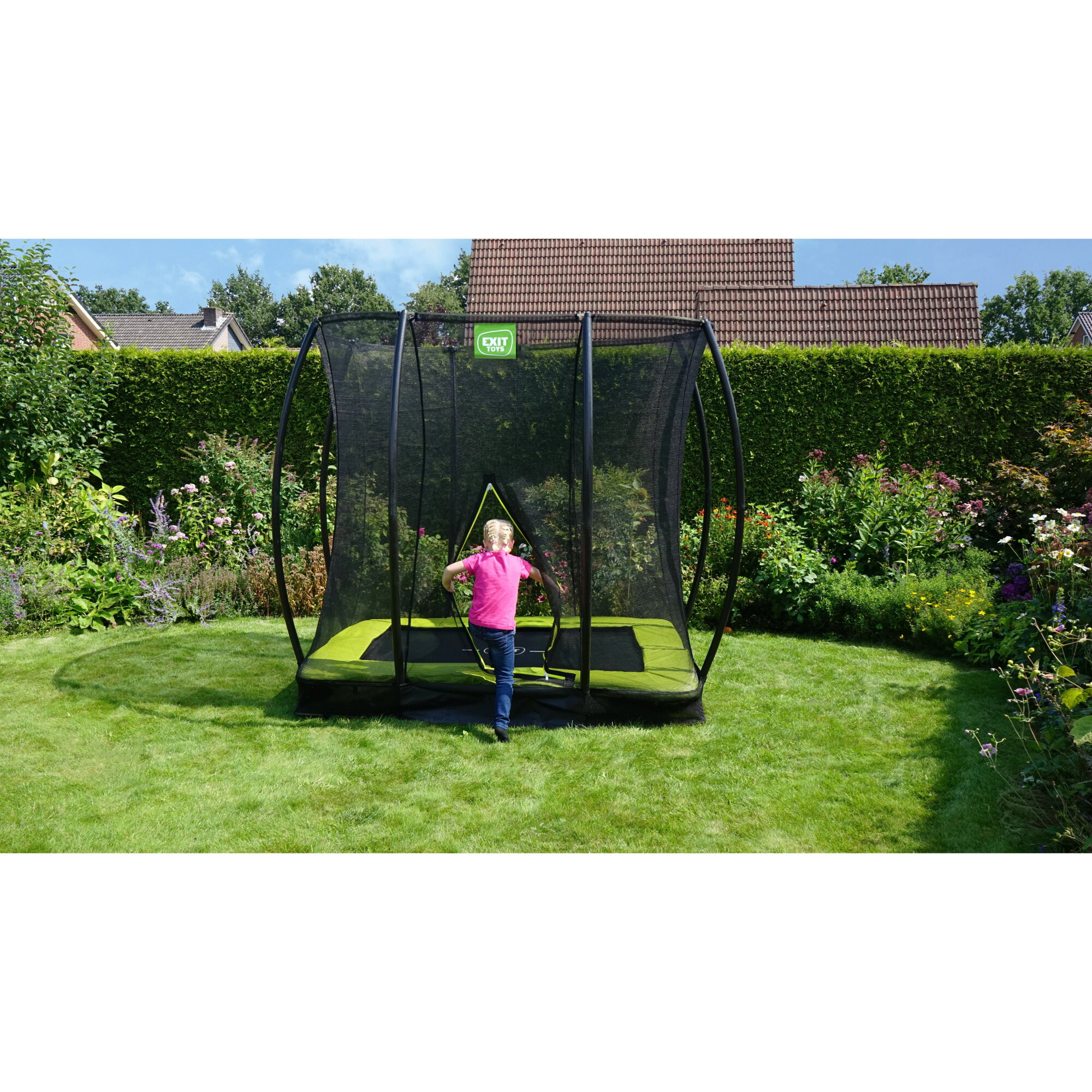 Trampolina EXIT Sillhouette gwarantuje bezpieczne skakanie. Dzięki systemowi EXIT Foot Protection (FPS), siatce między matą do skakania a krawędzią ochronną trampoliny, użytkownicy trampoliny nigdy nie zahaczają o sprężyny. Trampolina jest częściowo zakopana, dzięki czemu każdy może z łatwością z niej korzystać, nie trzeba się na nią wspinać.