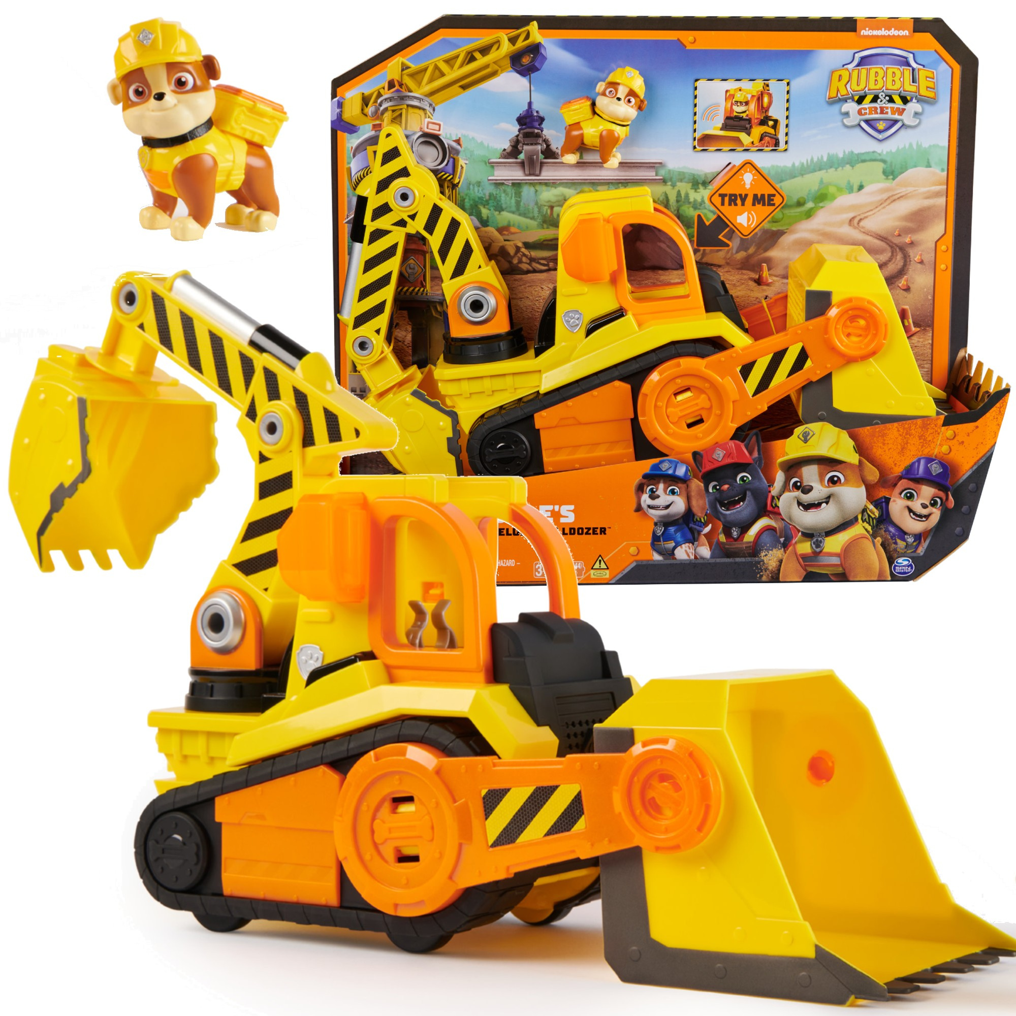 Buldożer jest nie tylko starannie wykonany, ale również wyposażony w realistyczne światła i dźwięki, które dodają zabawie autentyczności. Ruchome elementy umożliwiają odtwarzanie prawdziwych zadań budowlanych, co rozwija wyobraźnię i umiejętności manualne dziecka. W zestawie znajduje się także figurka Rubble'a, którą można posadzić w pojeździe.