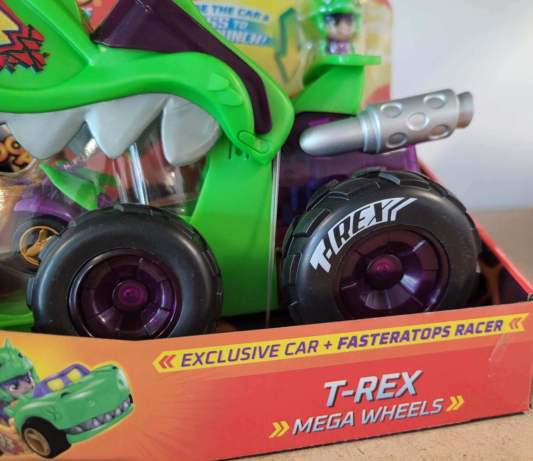 OUTLET Zestaw T-Racers T-Rex Mega Wheels Auto wyrzutnia i kierowca WADLIWY