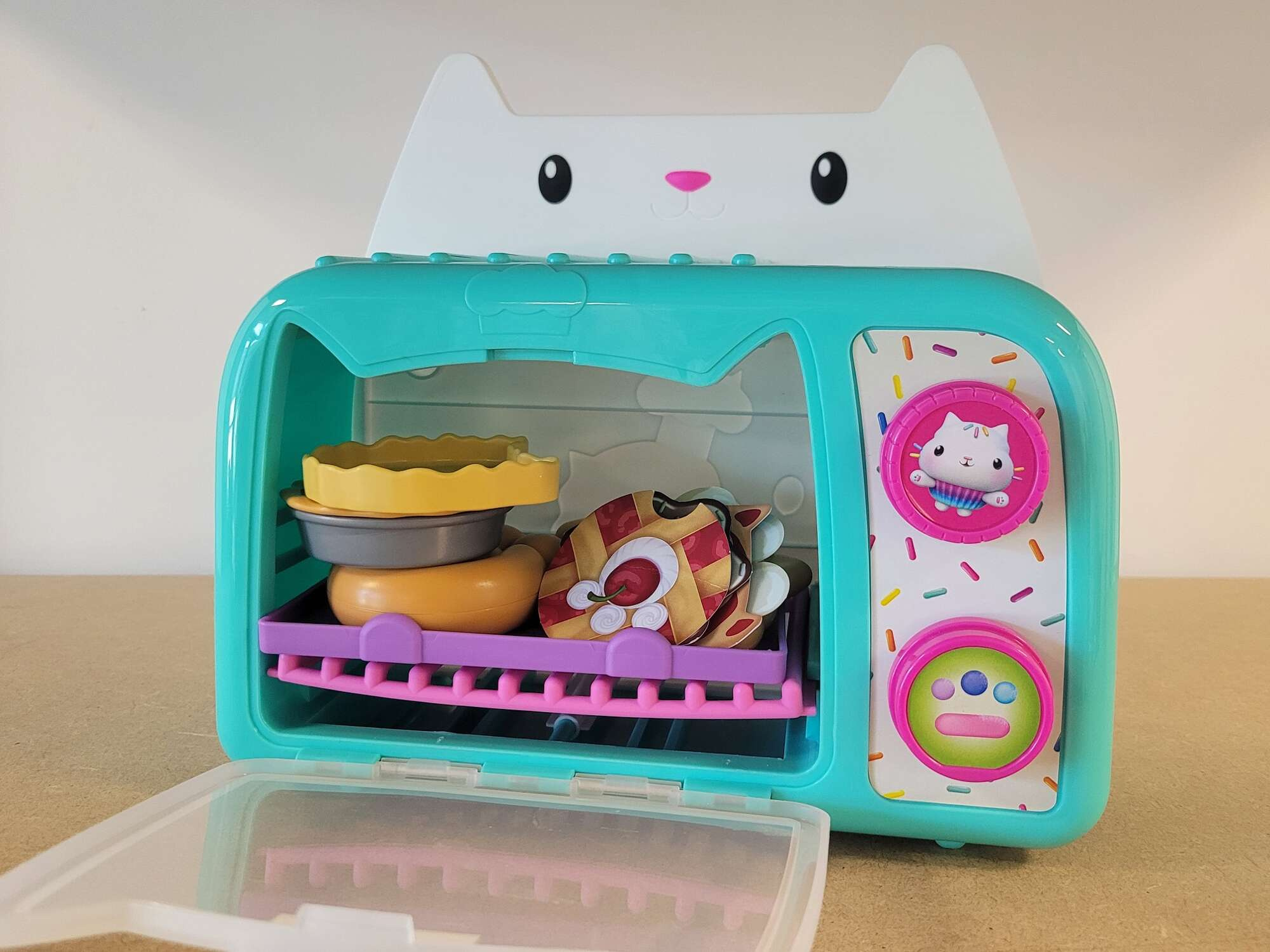 Dzięki aż 11 elementom pozwoli na wiele godzin świetnej zabawy: przygotowując donaty oraz szykując przekąski innymi gadżetami o charakterystycznym kocim kształcie. Dodatkowo mikrofalówka posiada efekty dźwiękowe i świetlne. Po przekręceniu pierwszego pokrętła usłyszymy chichot i inne dźwięki wydawane przez Łakotkę. W momencie użycia drugiej gałki w piekarniku zacznie świecić się światło.