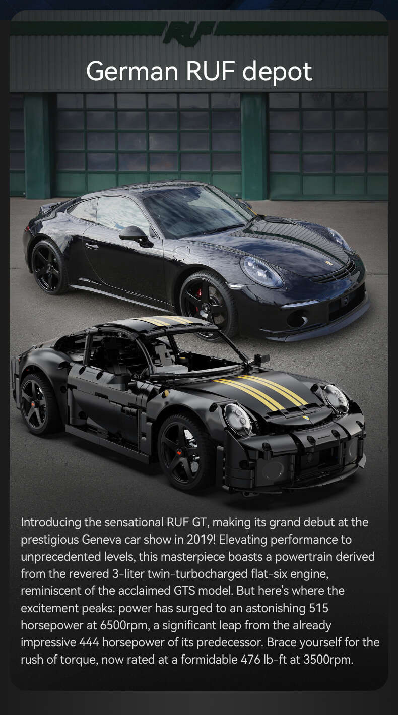 Zestaw składa się z 1655 elementów i umożliwia samodzielne złożenie samochodu miejskiego RUF GT w skali 1:10. Pojazd stworzony został ze szczególną uwagą na detale, które zapewnią niesamowitą zabawę. Ma czarną karoserię, a wiele z jego elementów jest ruchomych; posiada otwierane drzwi, maskę, bagażnik i światła oraz działający układ kierowniczy i amortyzację. Wnętrze zostało szczegółowo odwzorowane. Wyglądem przypomina prawdziwy pojazd. Jeździ do przodu, do tyłu, w prawo i w lewo.