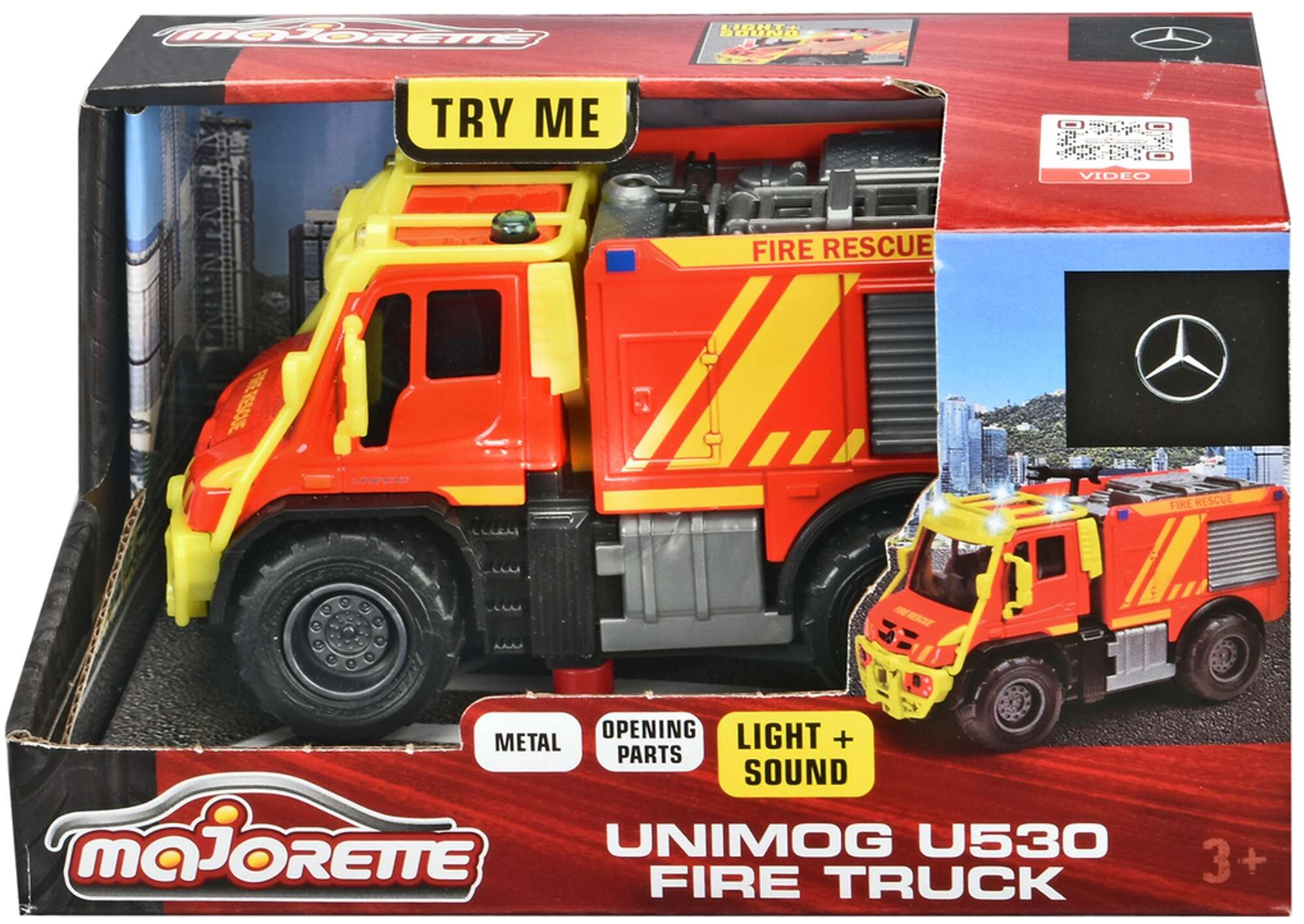 Majorette pojazd ratunkowy metalowa Straż pożarna Unimog Dźwięk Światło 13 cm