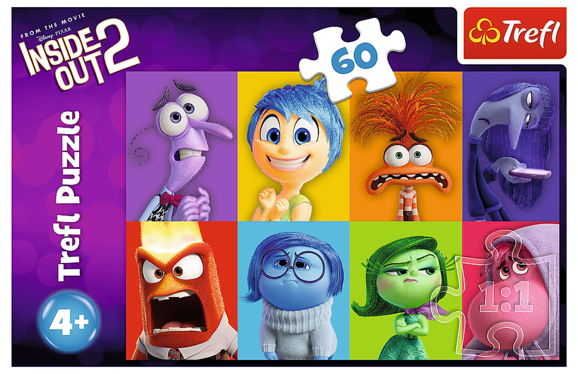 - Puzzle W głowie się nie mieści 2 składają się ze 60 elementów i tworzą obrazek o wymiarach 33 x 22 cm, na którym możemy zobaczyć bohaterów popularnego filmu. Produkt wykonany z kalandrowanego papieru, odbijającego światło, ułatwiającego układanie.