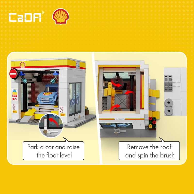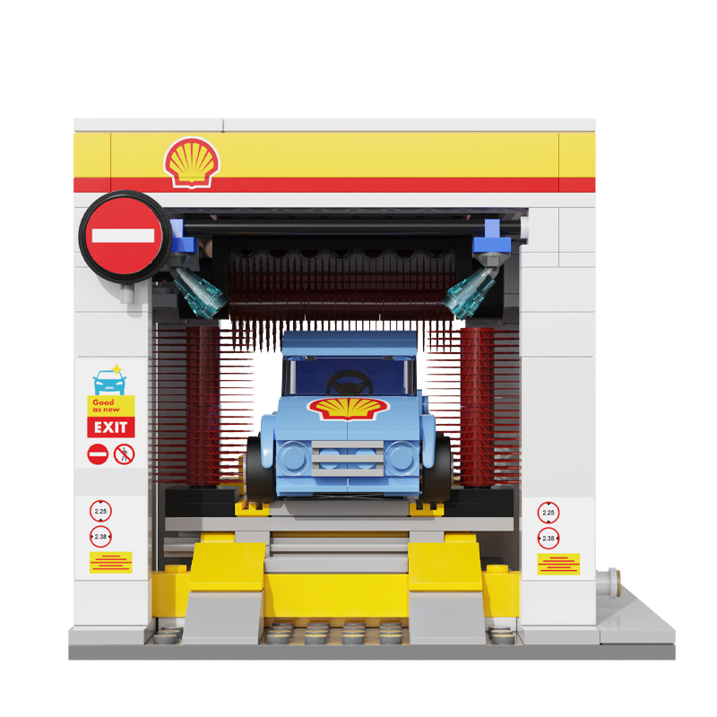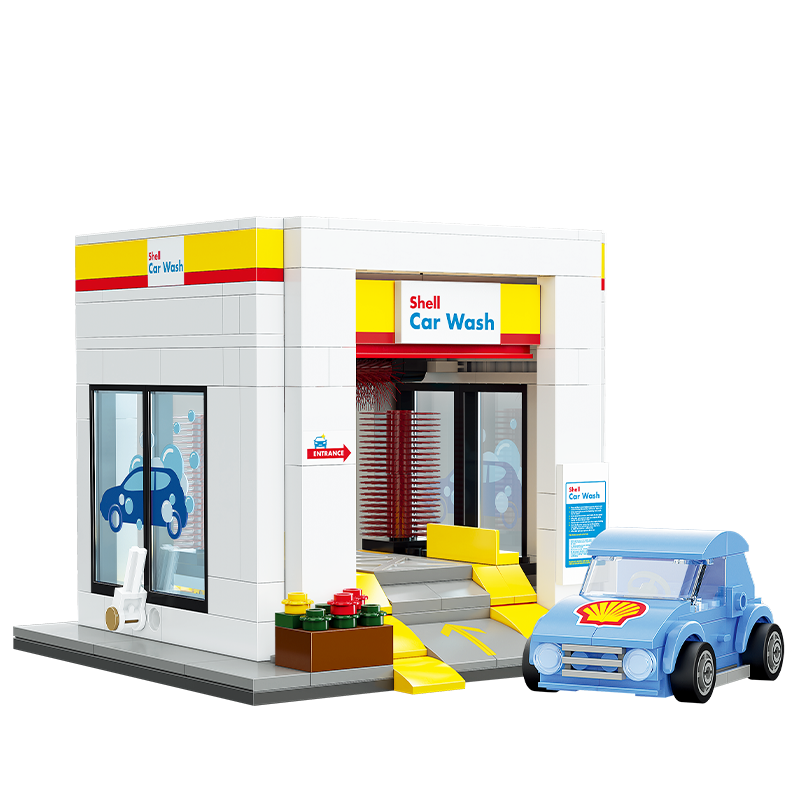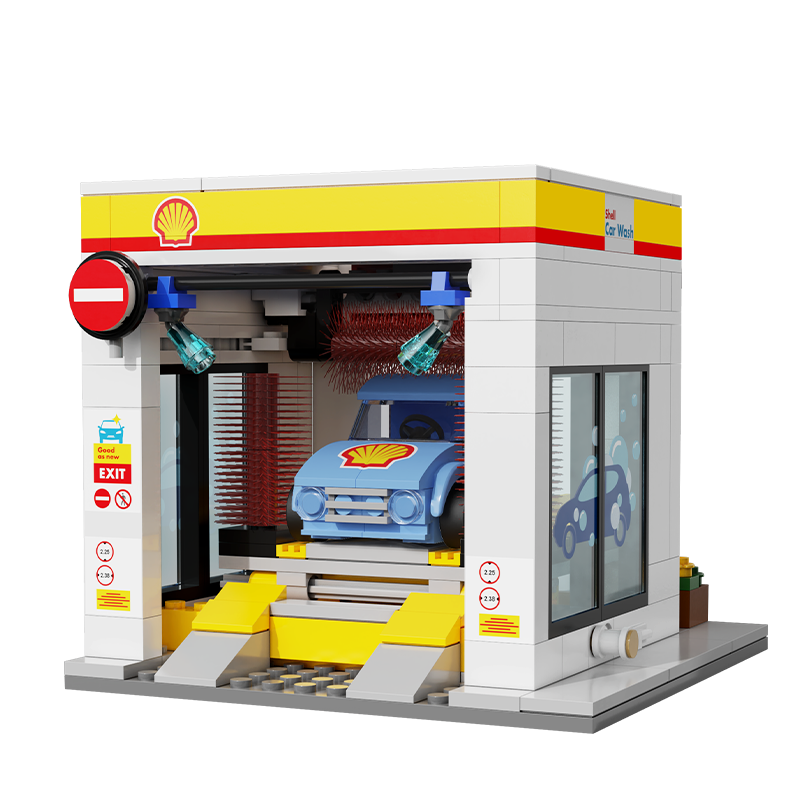 Zestaw składa się z 294 elementów i umożliwia samodzielne złożenie myjni samochodowej marki Shell.