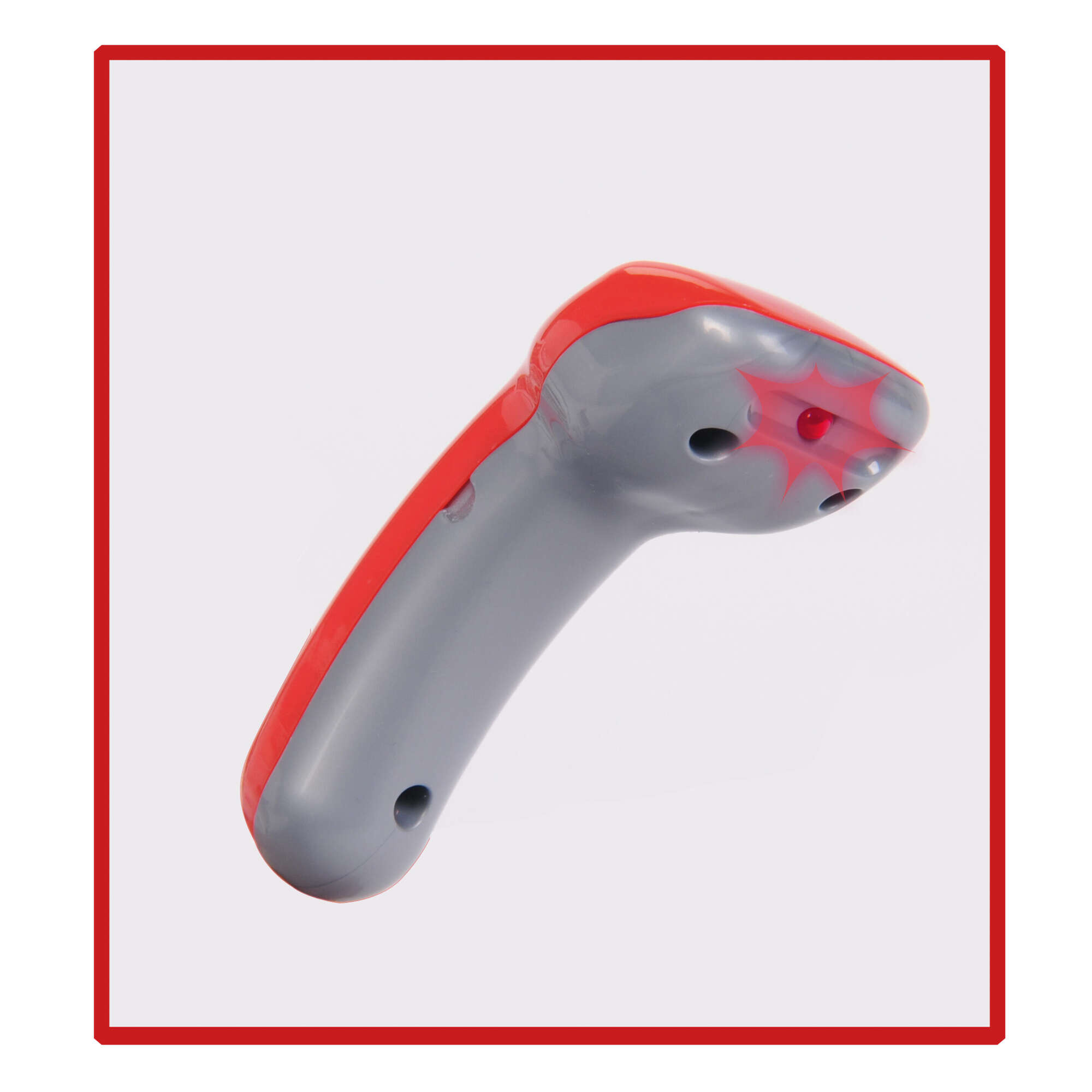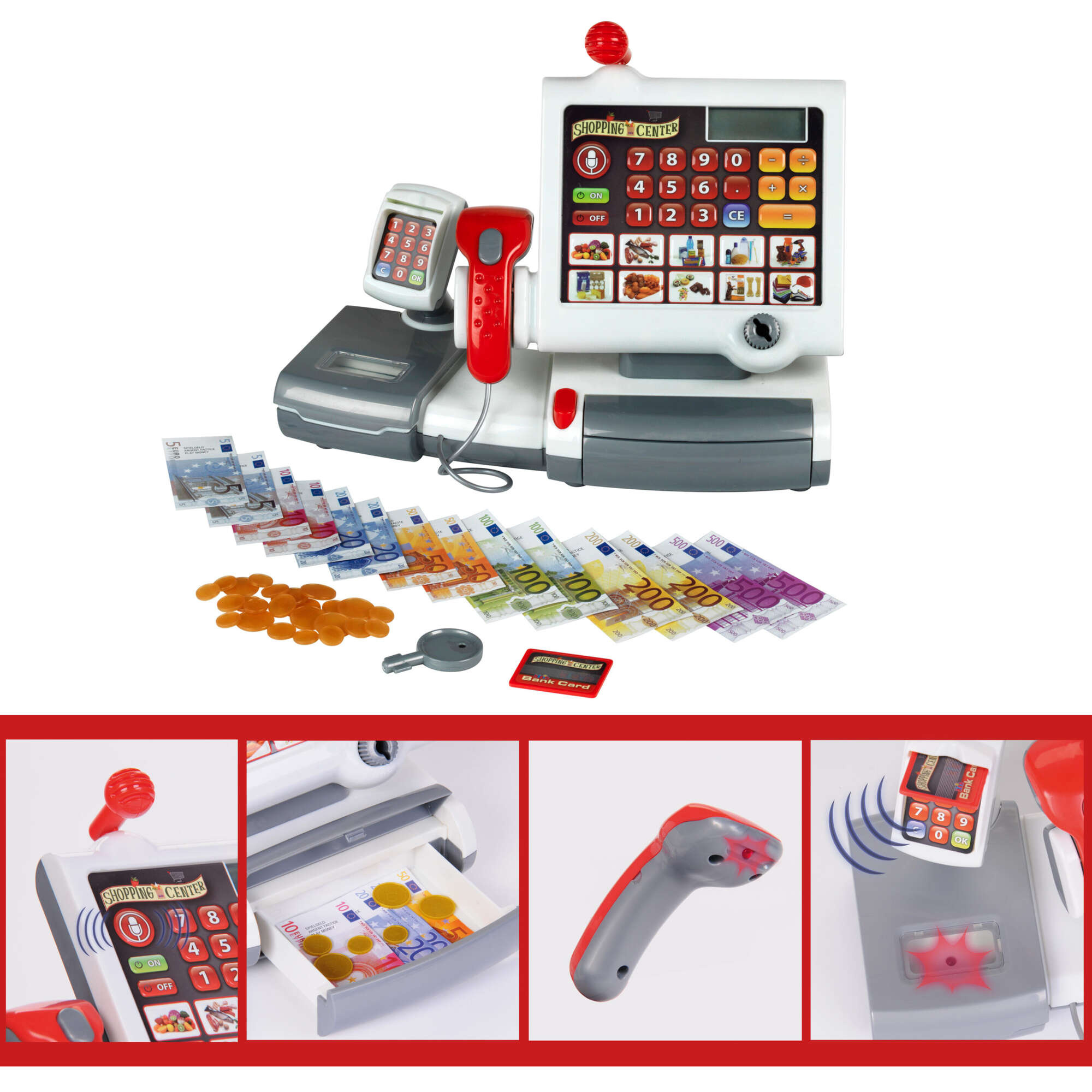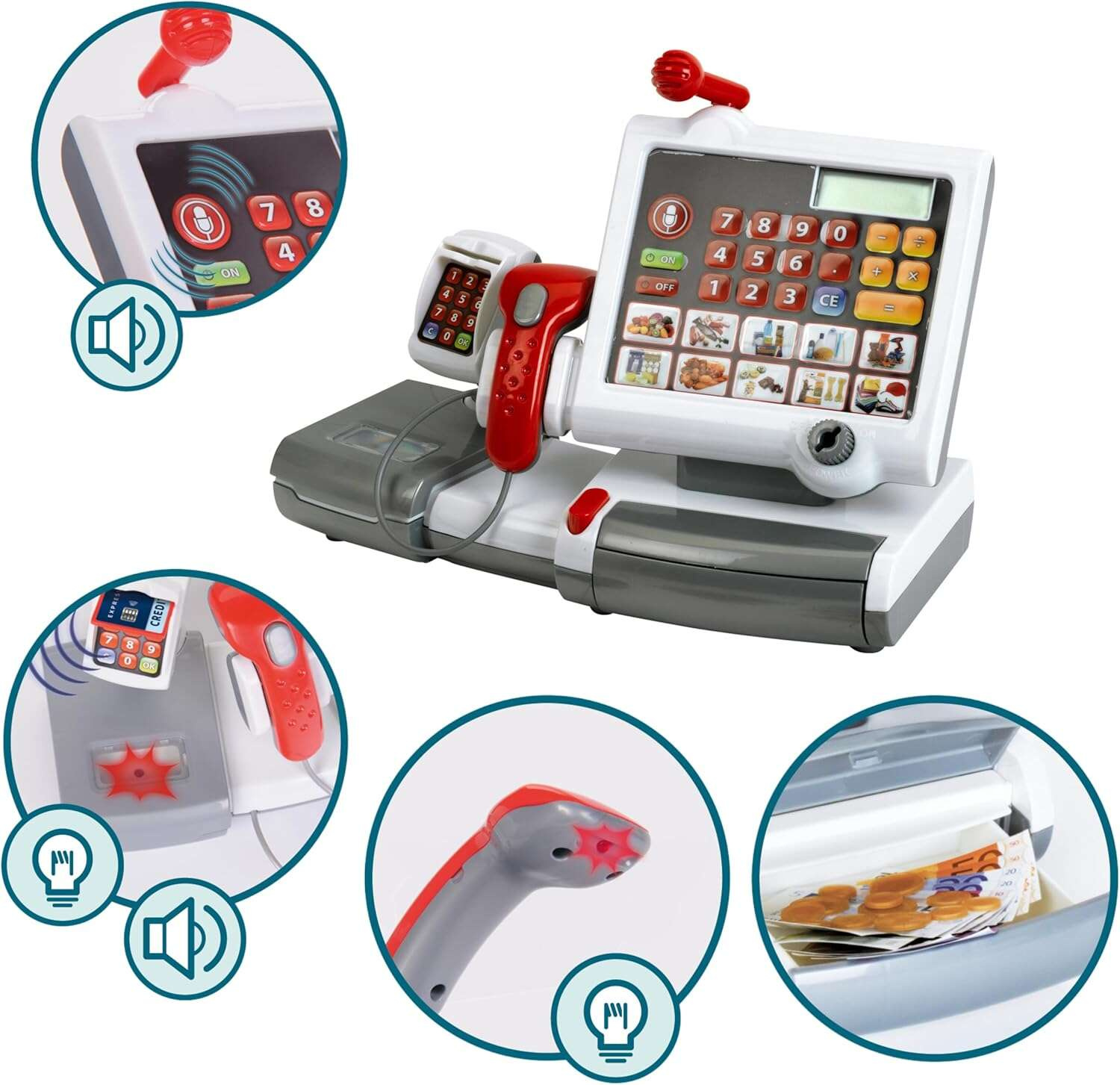 Ta elektroniczna kasa sklepowa została także wyposażona w skaner kodów z efektem świetlnym, wagę również z efektem świetlnym, czytnik kart z efektem dźwiękowym oraz mikrofon. Na przednim panelu kasy znajduje się duży czerwony przycisk, za pomocą którego można kasę otworzyć. Do zestawu dołączono również banknoty, monety oraz kartę bankową dla jeszcze ciekawszej zabawy.