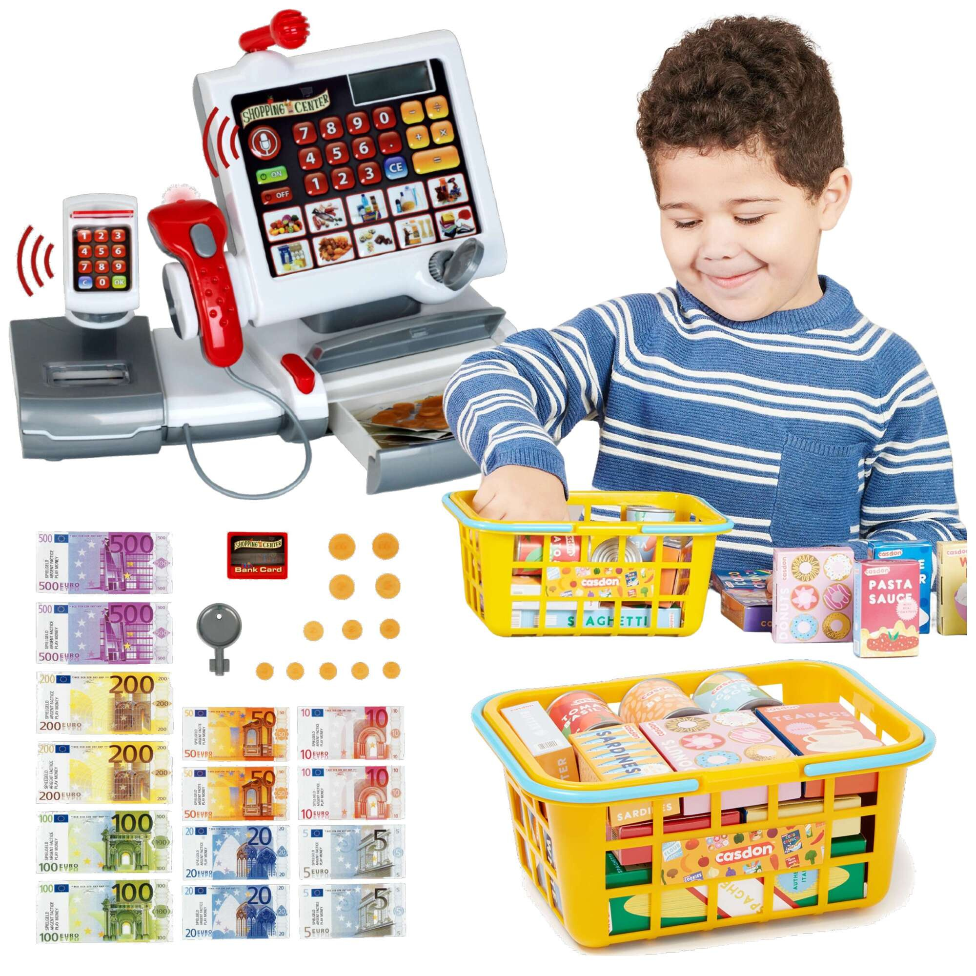 Elektroniczna kasa sklepowa + zabawkowy koszyk na zakupy z akcesoriami dla dzieci AGD 3+