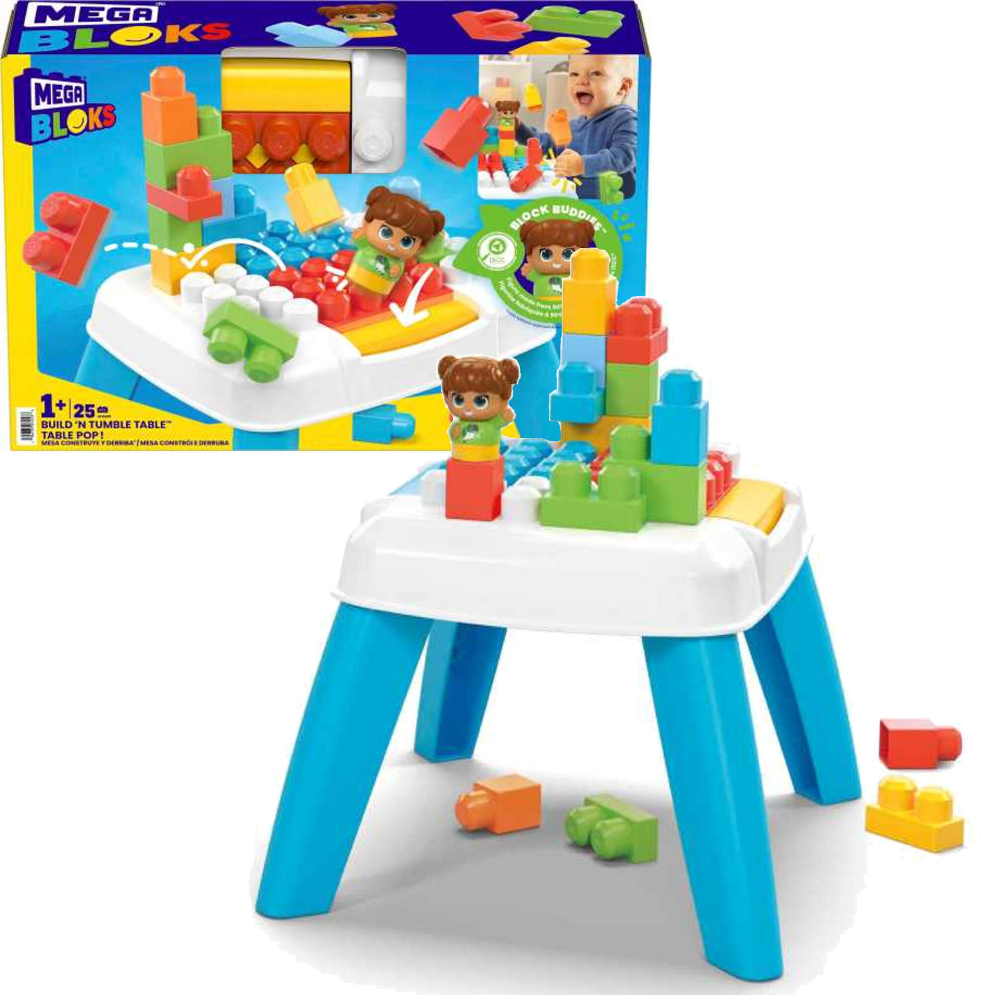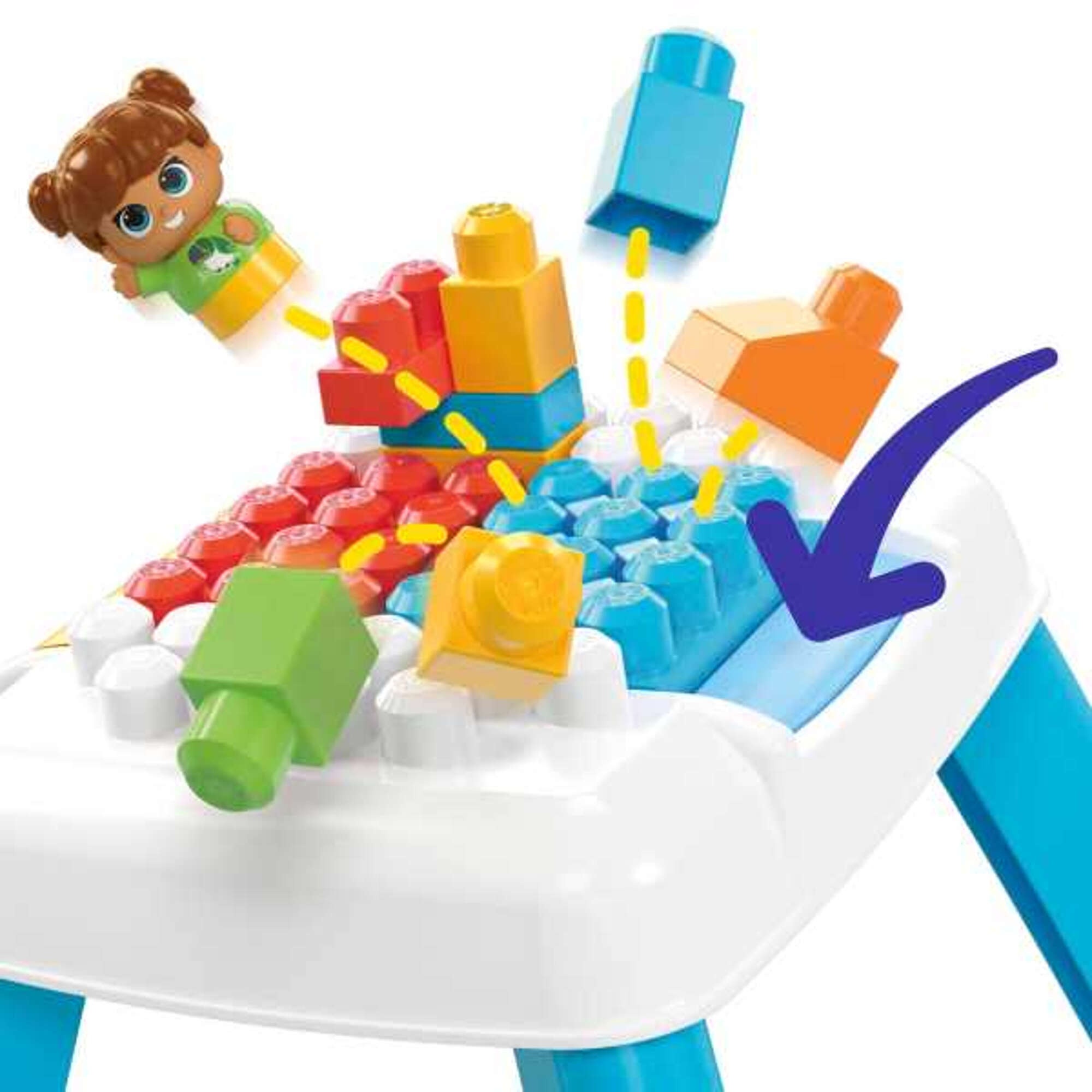 Stolik posiada dużą przestrzeń z wypustkami, aby łatwiej można było przyczepić klocki do powierzchni. Ułatwiają one także budowanie stabilnych budowli i wież. W zestawie dołączono również 24 kolorowych klocków oraz figurkę przedstawiającą dziewczynkę do zabawy.