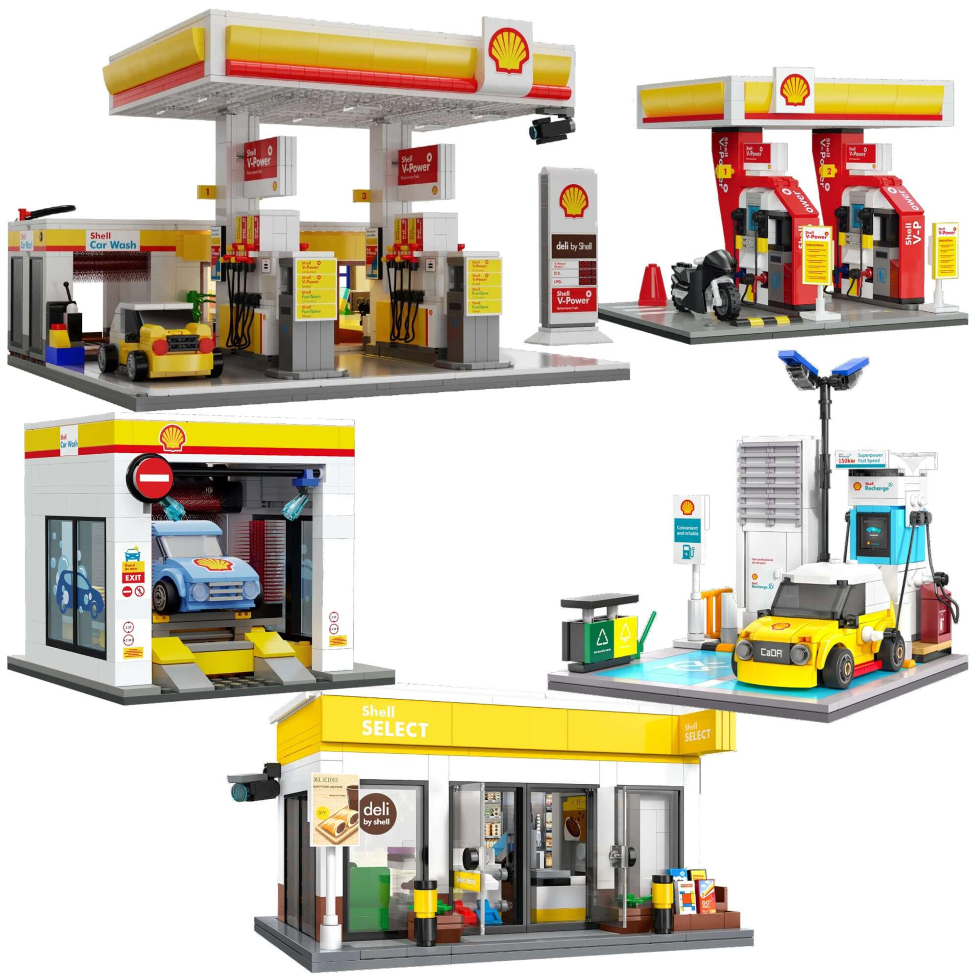 Stań się właścicielem swojej własnej stacji paliw, stacji do ładowania samochodów, budynku Sklepik, stacji detalicznej i baw się w nieskończoność z mega zestawem Shell.
