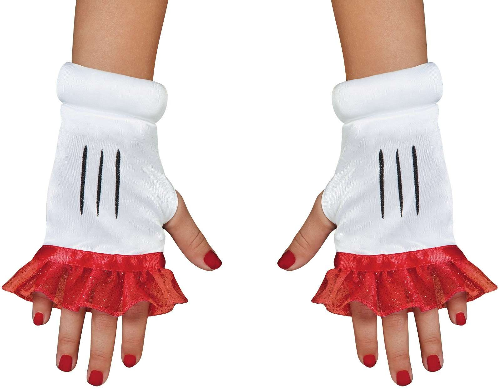 Urocze rękawiczki bez palców z motywem Myszki Minnie z błyszczącymi czerwonymi koronkowymi falbankami zostały wykonane z miękkiej tkaniny w białym i czerwonym kolorze.