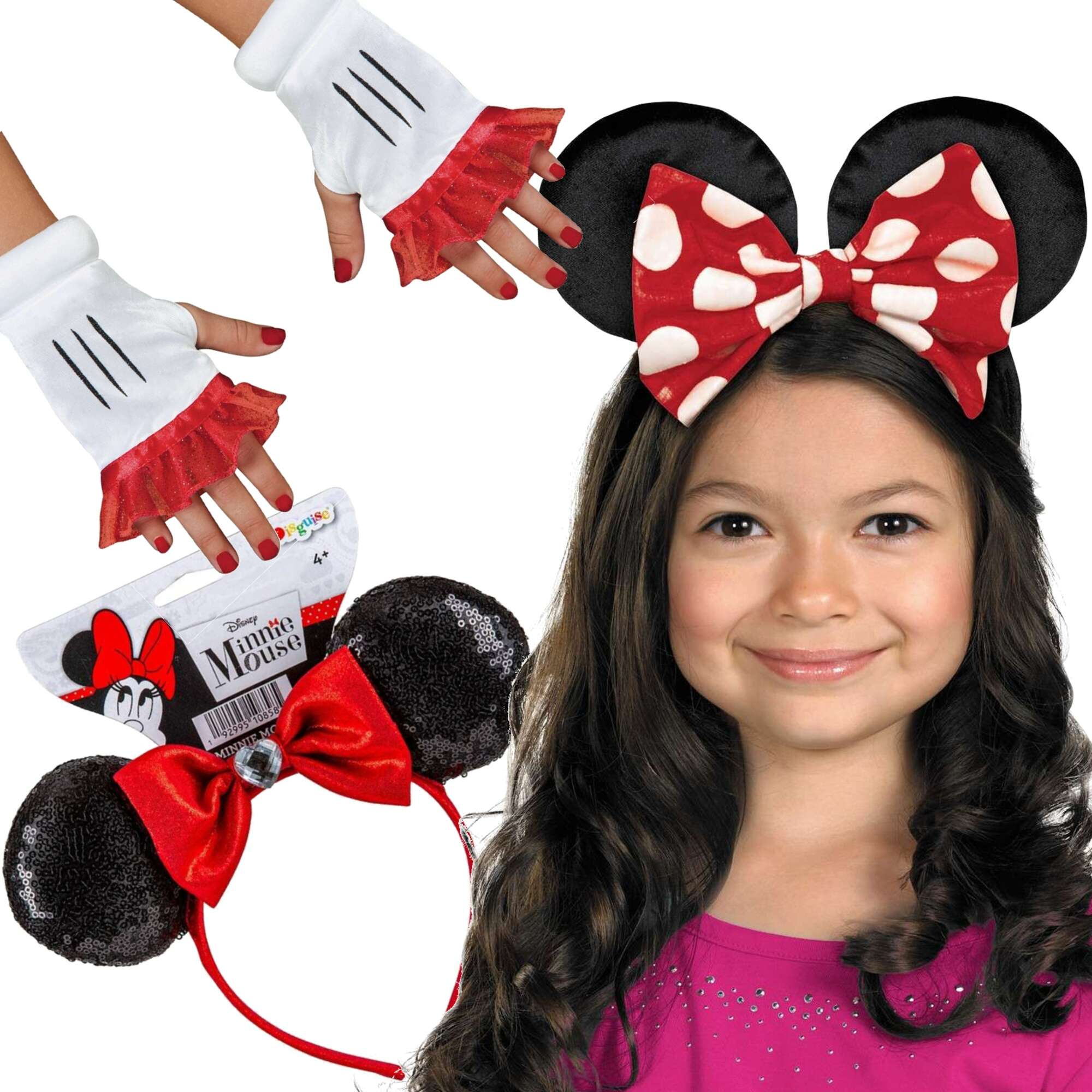- Słodkie opaski do włosów z uszkami Myszki Minnie oraz rękawiczki bez palców z motywem Myszki Minnie to fantastyczne akcesoria dla dziewczynki na każdą imprezę, które pozwolą poczuć się jak jej ulubiona bajkowa postać.