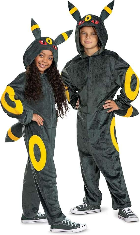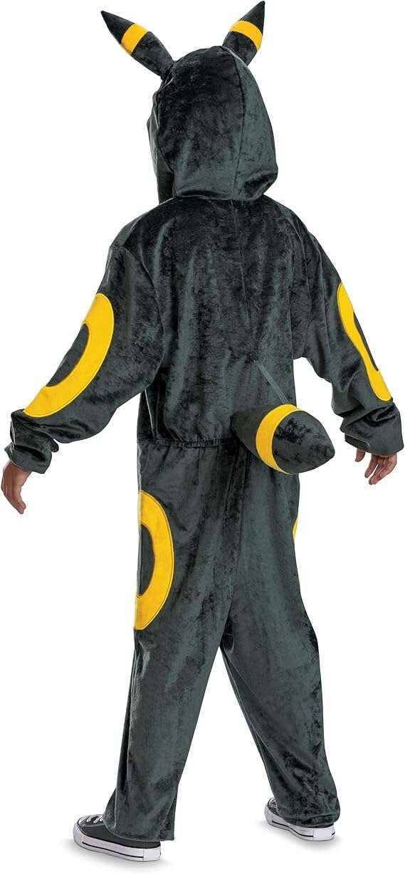 Zawiera czarno-żółty kostium z kapturem, dzięki czemu dziecko może upodobnić się do mrocznego Pokemona - Umbreona.