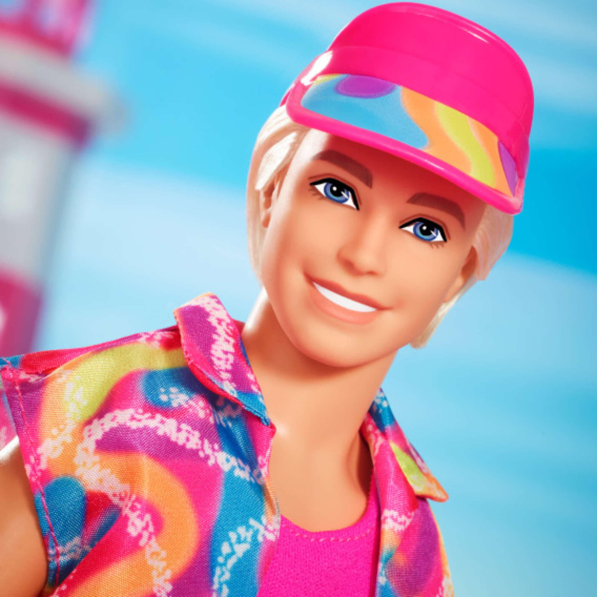 Lalka Ken to uroczy niebieskooki blondyn, który kocha Barbie. Ubrany jest w różową podkoszulkę i na to ma nałożoną kolorową kamizelkę. Na jego nogach widnieją krótkie spodenki pod kolor narzutki, a na głowie ma założony daszek przeciwsłoneczny. Lalka posiada dużo miejsc artykulacji, dzięki czemu jego nogi, ręce oraz głowa ruszają się.