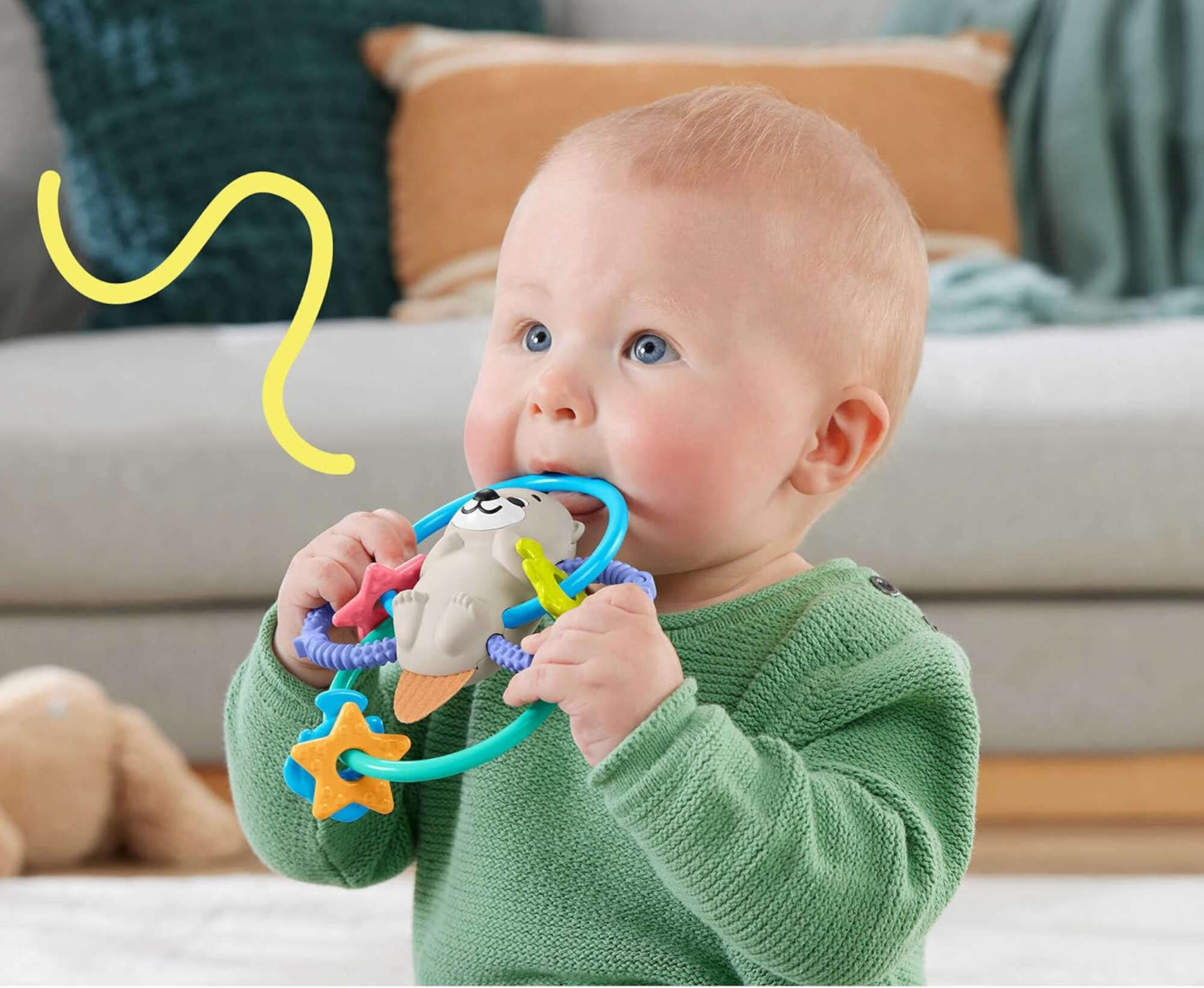 Zakręcony gryzaczek w kształcie uroczej wydry to idealny towarzysz dla maluchów podczas ząbkowania, oferujący zarówno ukojenie, jak i zabawę.