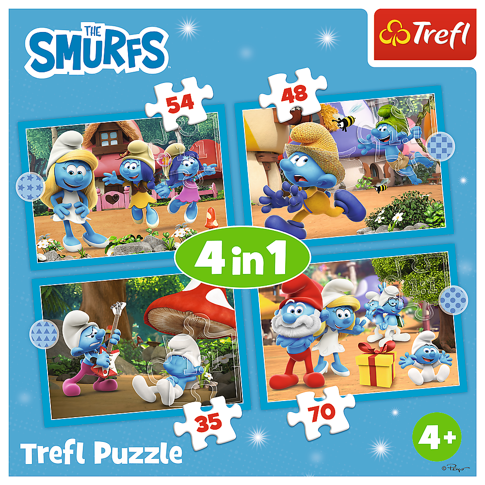 Trefl Puzzle 4w1 Wioska Smerfów The Smerfs kolorowa Układanka dla najmłodszych 4+