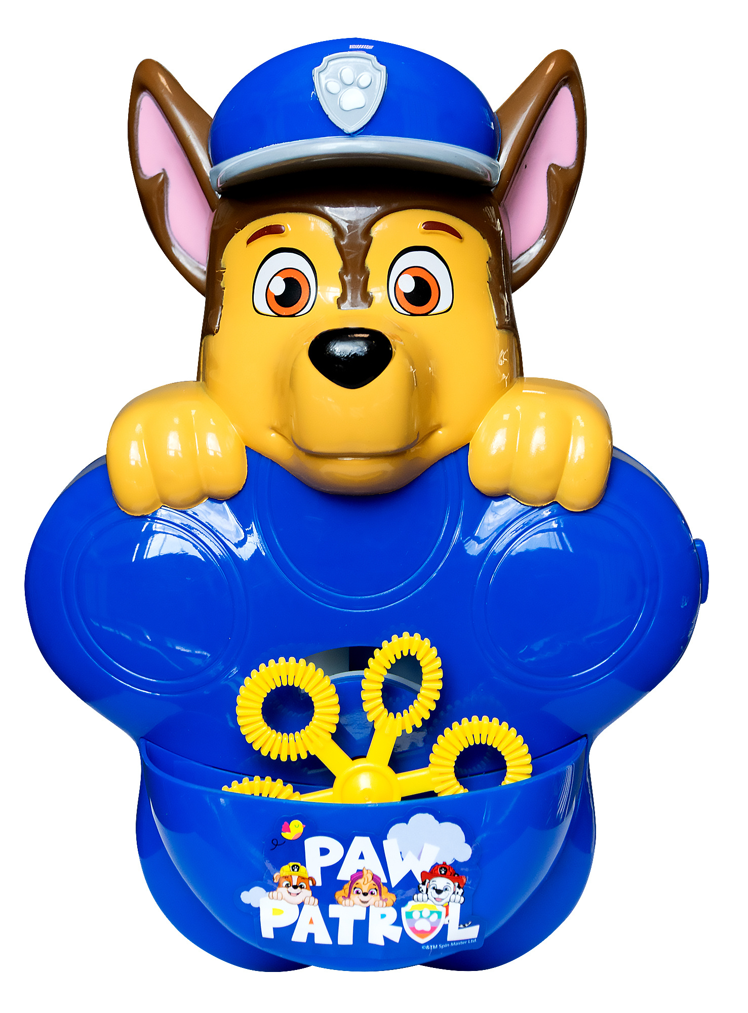 Zestaw składa się z uroczej maszynki do baniek z podobizną piesków z bajki. Posiada obrotowe koło z dziurkami, które wytwarzają bańki. Maszynkę można włączać i wyłączać za pomocą umieszczonego na górze przycisku. Wraz z maszynką w zestawie znajduje się butelka z płynem do baniek.