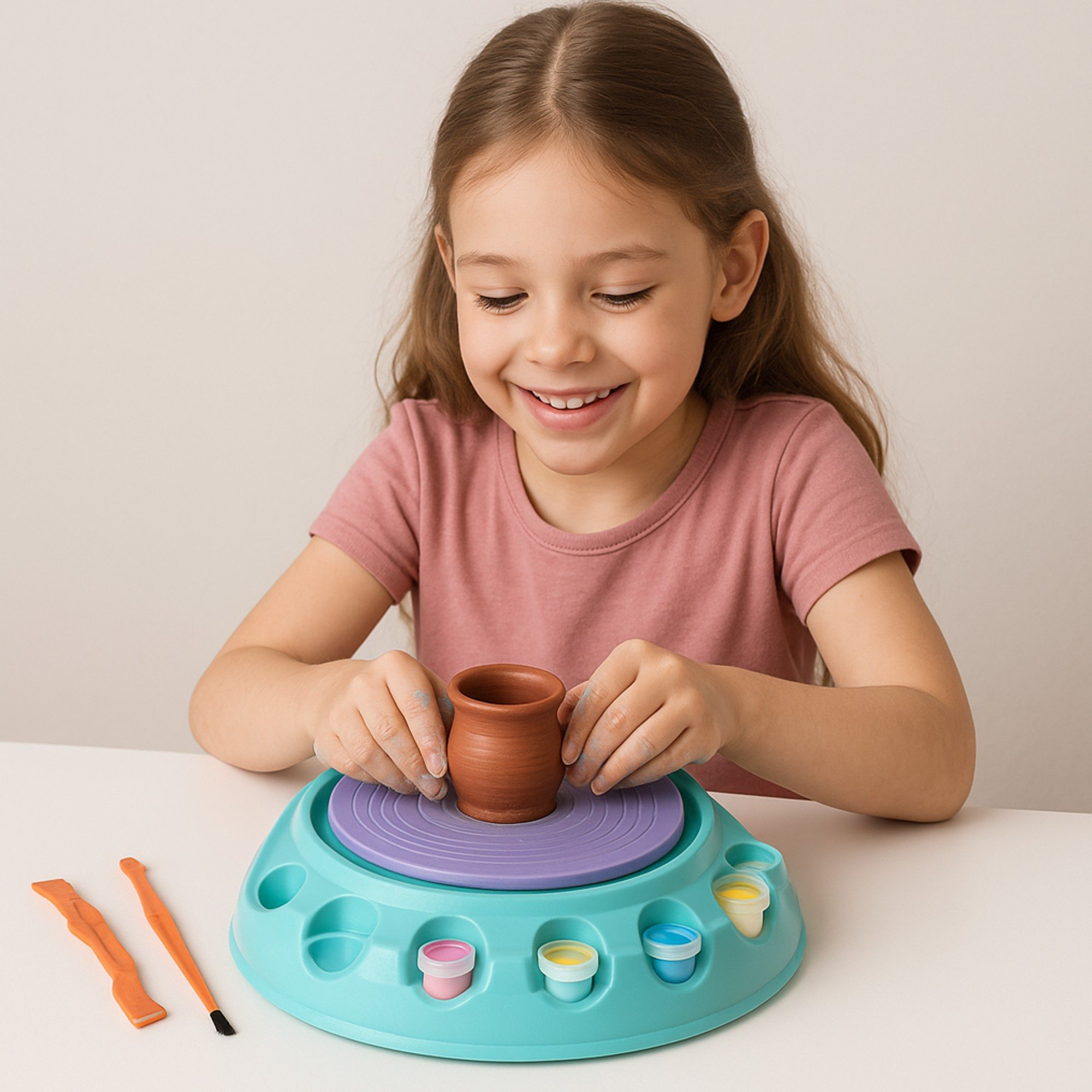 - Ten kreatywny zestaw do tworzenia ceramiki to świetny sposób, aby rozbudzić w dziecku artystyczną pasję i pozwolić mu wcielić się w rolę prawdziwego garncarza! Zestaw zawiera elektryczne koło garncarskie, narzędzia do modelowania oraz farby, które umożliw