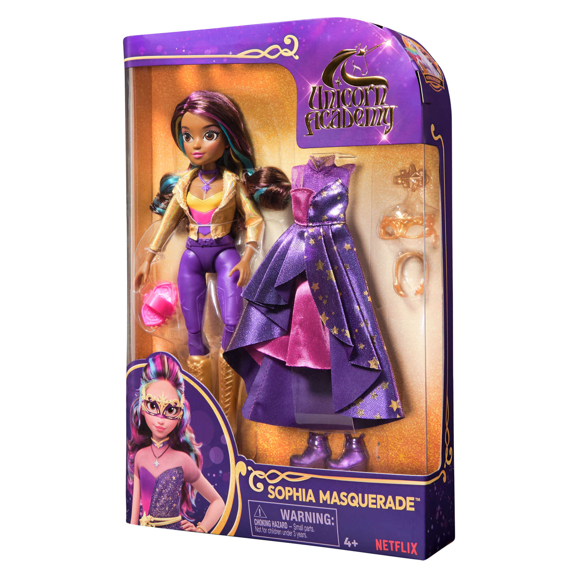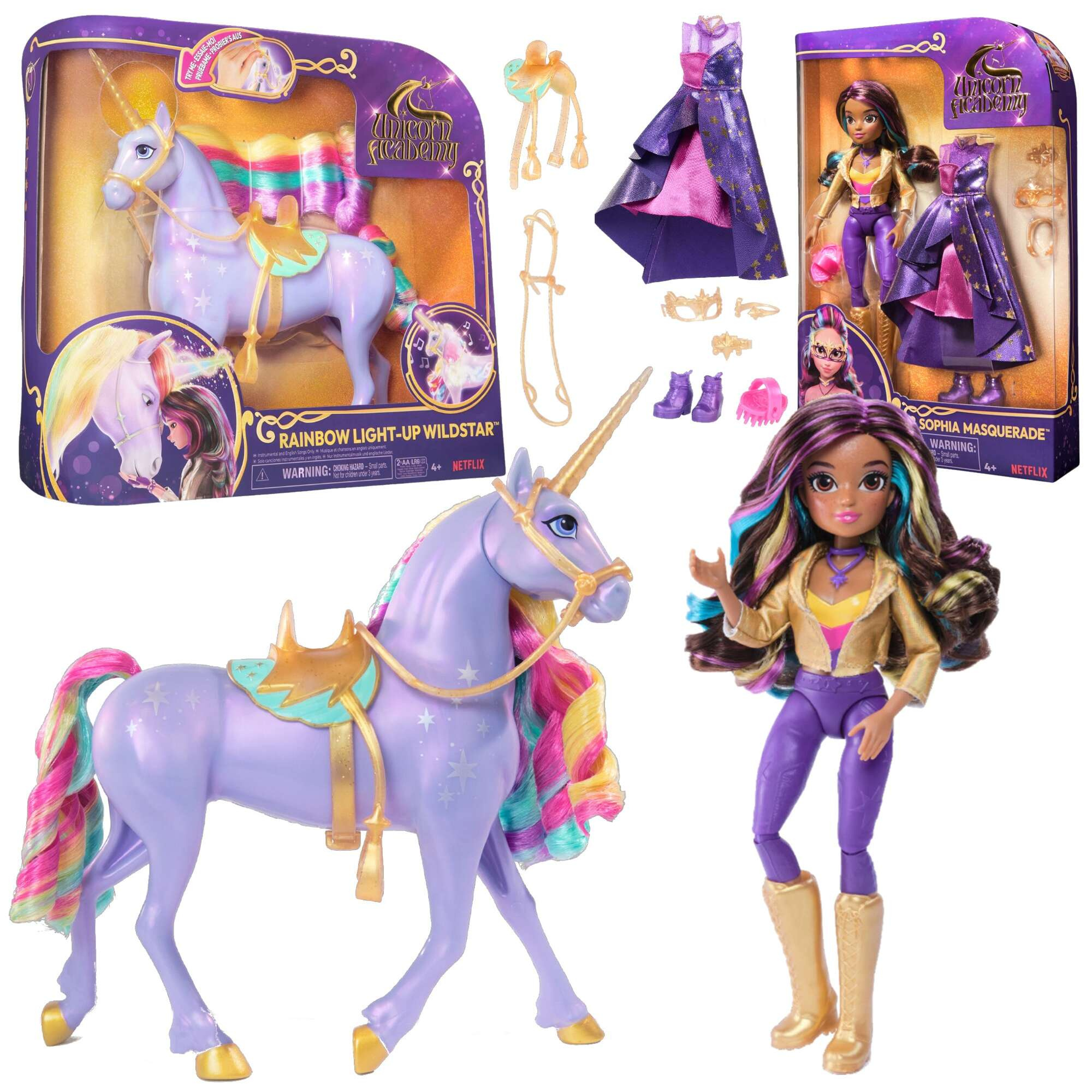 - Unicorn Academy Zestaw Lalka Sophia Masquerade 24 cm i dodatkowy strój, jednorożec Wildstar światło/dźwięk + akcesoria. Zestaw to wrota do magicznej krainy pełnej przygód, przyjaciół i niezwykłych miejsc.