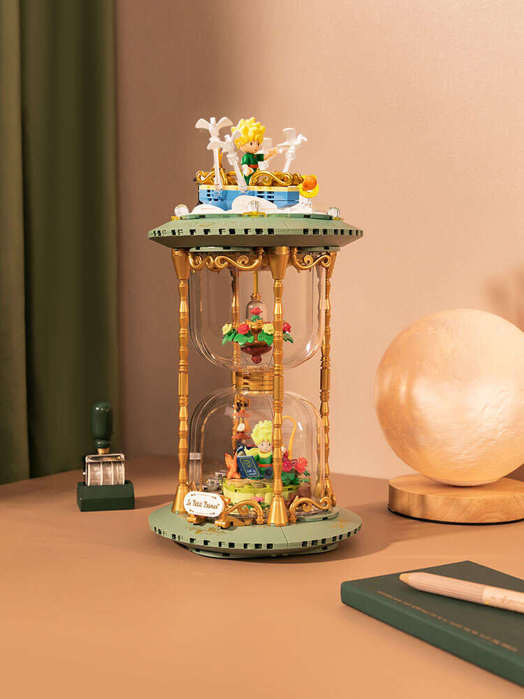 - Zestaw „Klepsydra Małego Księcia” to niezwykłe połączenie piękna i symboliki czasu. Na tle eleganckiej klepsydry wypełnionej drobinkami piasku znajduje się Mały Książę i jego wierny lis, otoczeni różami oraz gwiazdami. Detale takie jak delikatne złote akc