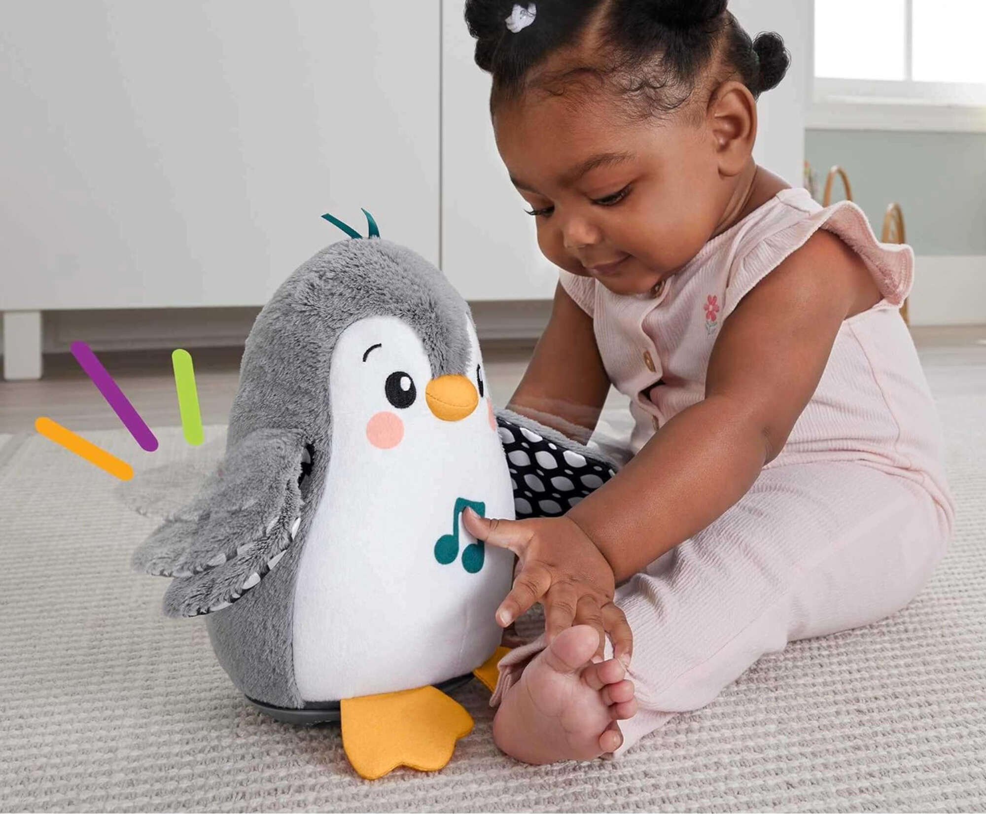 - Ten uroczy pluszowy pingwinek to idealny towarzysz dla maluszka, który łączy w sobie muzykę, ruch i sensoryczne doświadczenia.