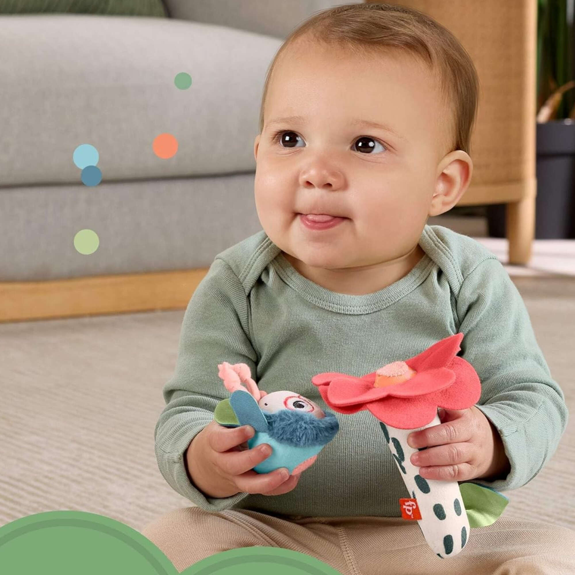 Fisher-Price Planet Friends Shake ‘n Rattle Busy Bee to zestaw dwóch uroczych, pluszowych grzechotek zaprojektowanych z myślą o najmłodszych. Dzięki starannie dobranym materiałom i różnorodnym fakturom zabawka wspiera rozwój sensoryczny malucha, jednocześnie promując ekologiczną odpowiedzialność – tkaniny wykorzystane w produkcji pochodzą w 74,98% z przetworzonych tworzyw sztucznych.