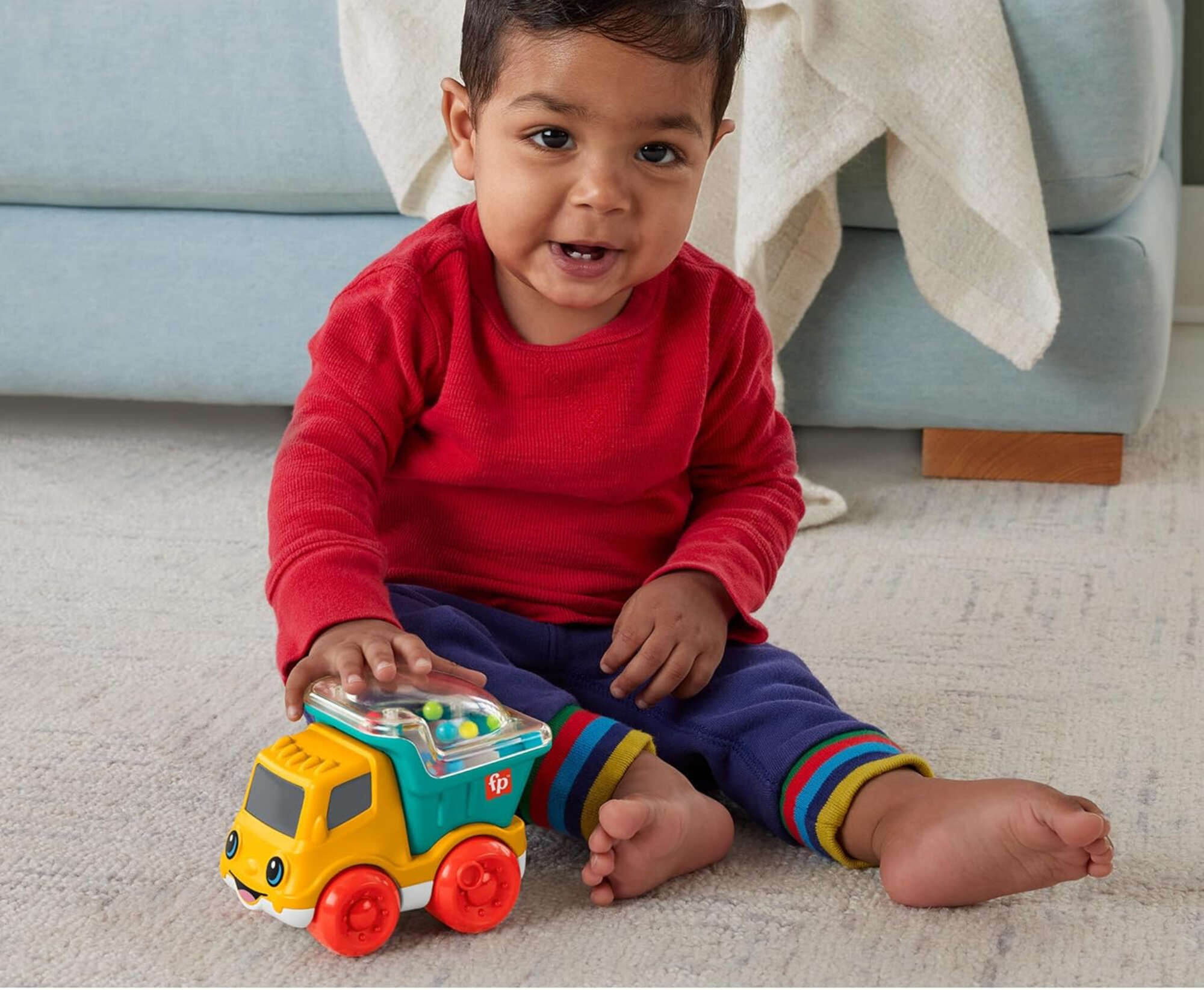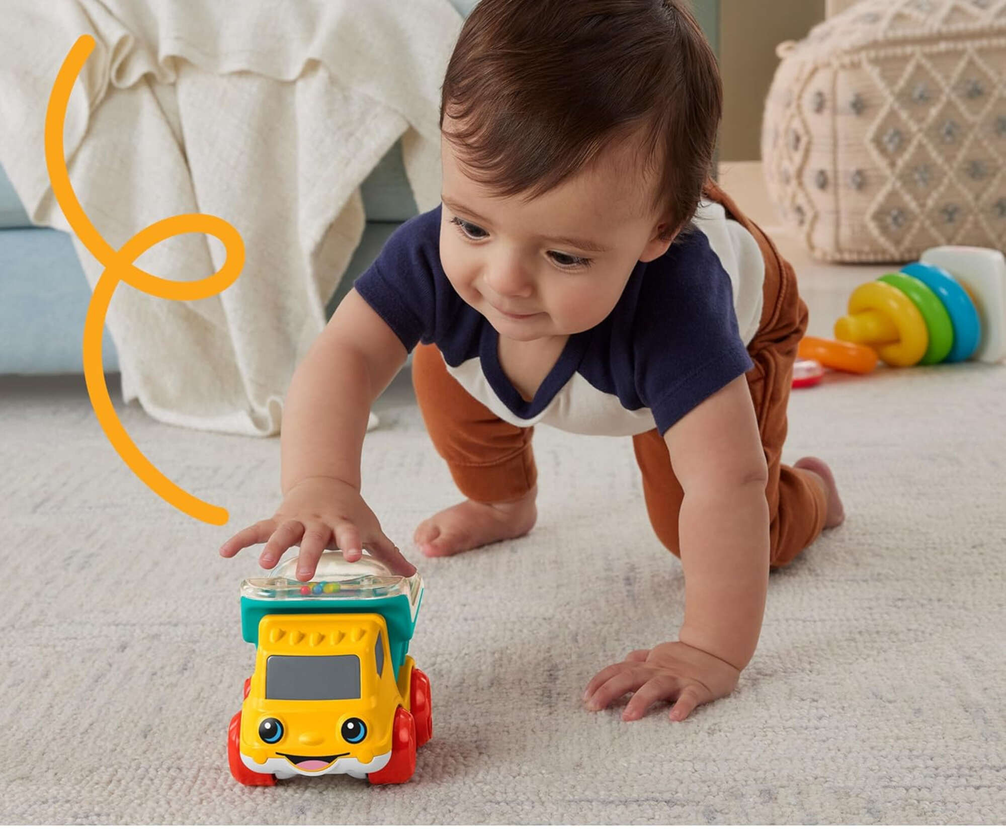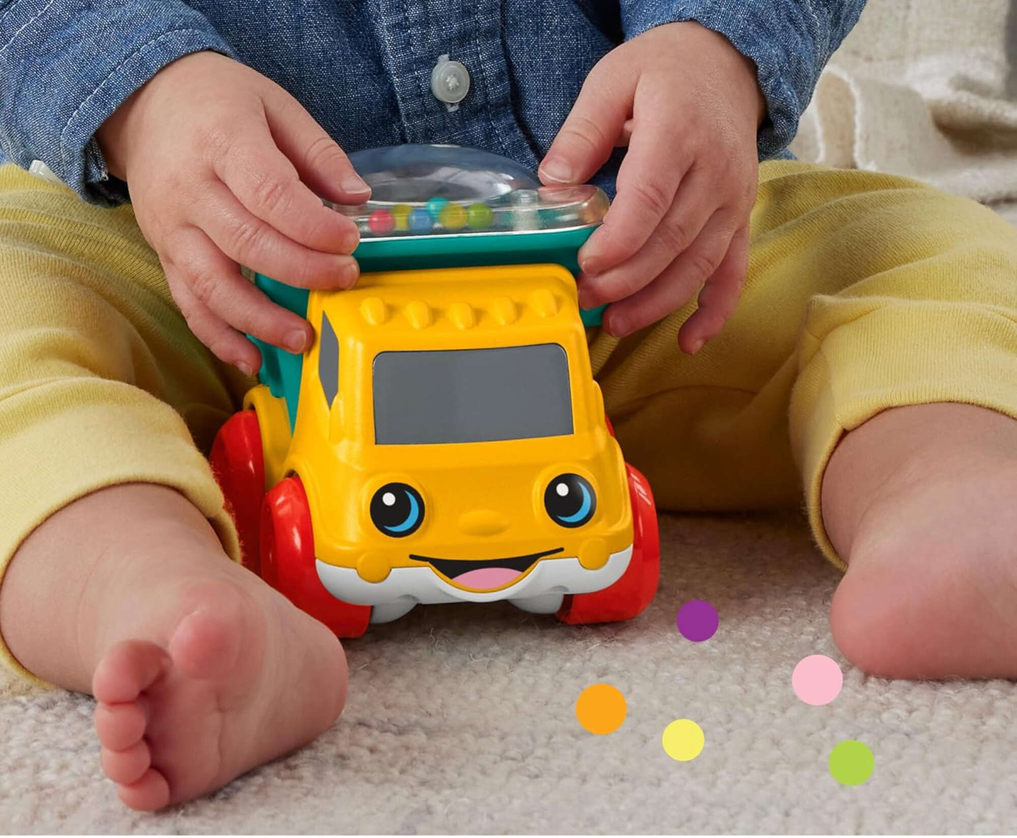 W skrzyni ładunkowej znajdują się kolorowe kulki, które podskakują podczas popychania lub ciągnięcia pojazdu, co dostarcza maluchowi mnóstwo radości. Dzięki temu dziecko uczy się zależności przyczynowo-skutkowych i rozwija koordynację ruchową.