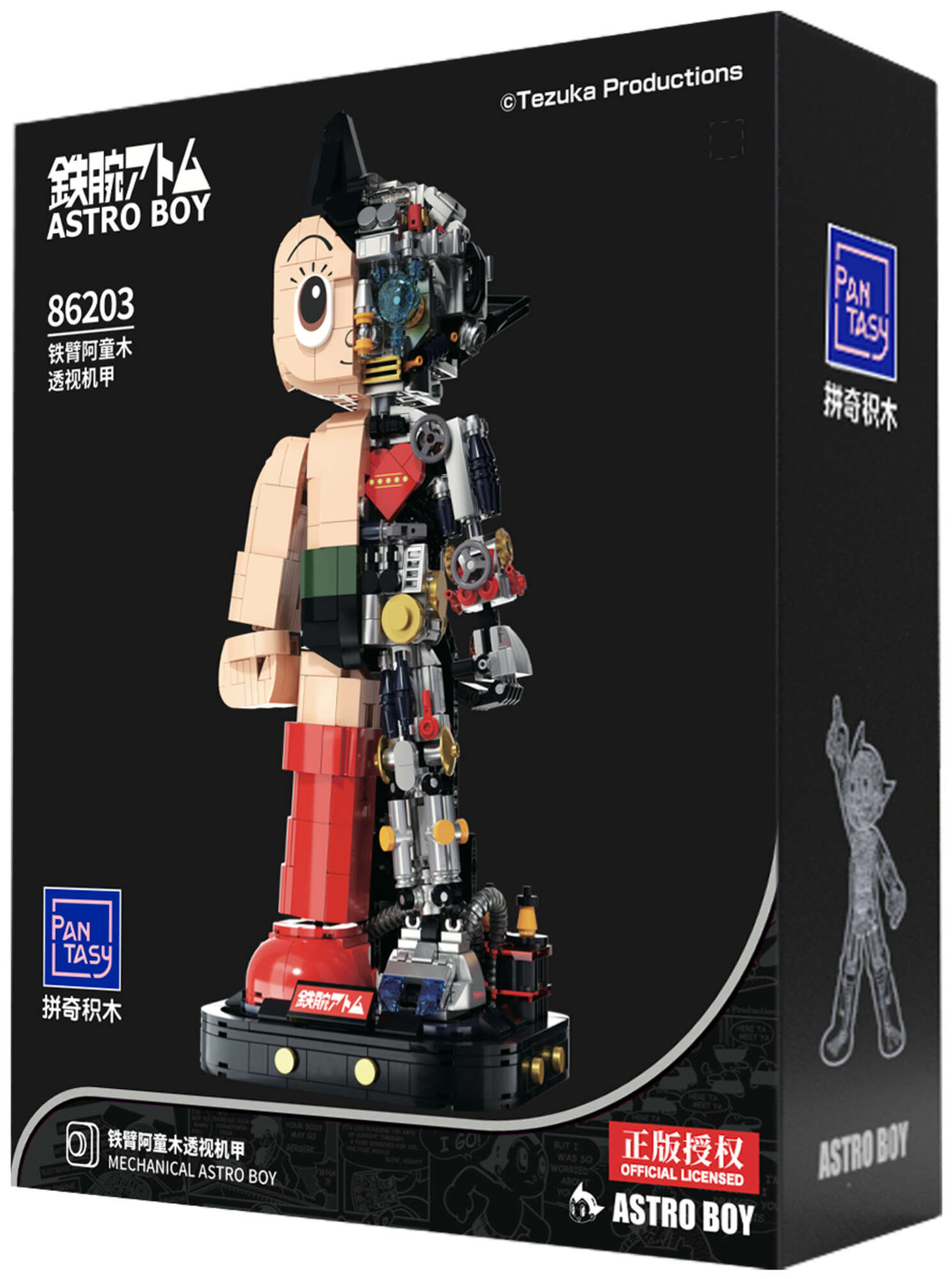 - To wyjątkowa figurka z klocków, która w unikalny sposób oddaje futurystyczny design kultowego bohatera. Model przedstawia Astro Boya w dynamicznej pozie, z półprzezroczystą obudową odsłaniającą jego skomplikowane mechanizmy wewnętrzne