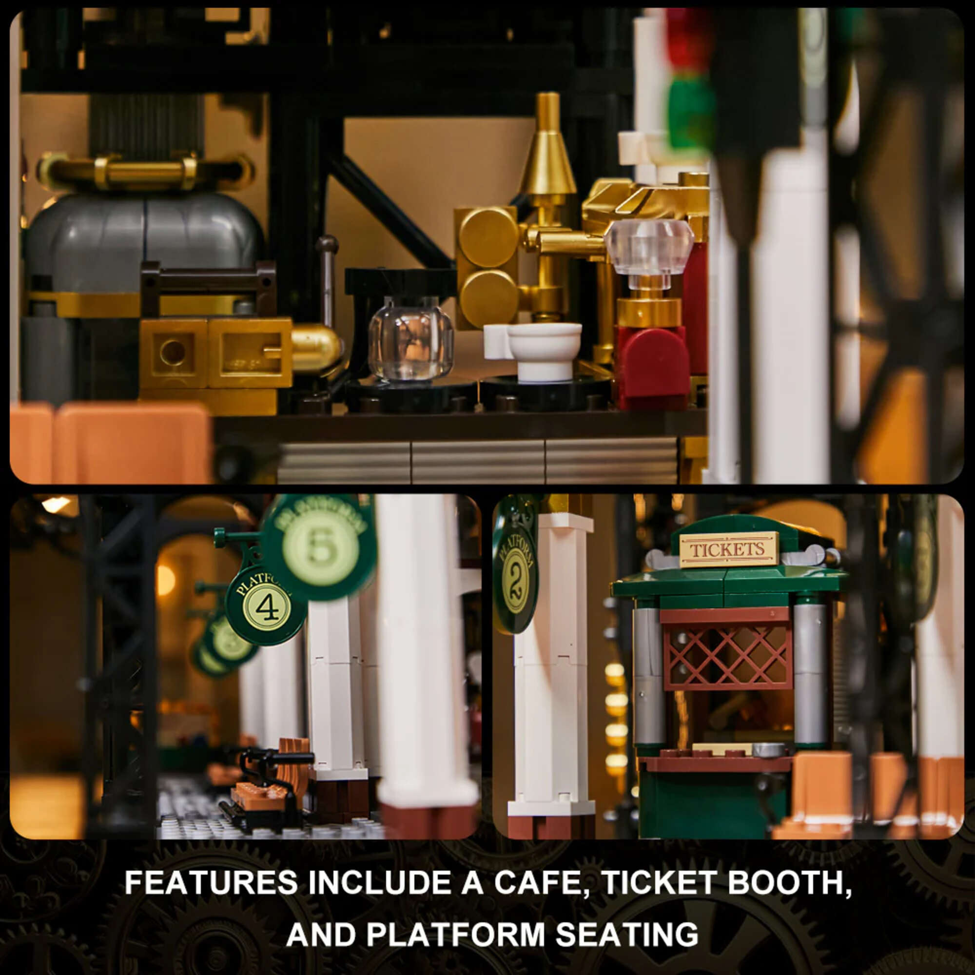 Model został zaprojektowany z myślą o najbardziej wymagających konstruktorach oraz kolekcjonerach, oferując interaktywne mechanizmy nadające stacji dynamiczny, steampunkowy charakter. Ta modułowa konstrukcja zapewnia dynamiczne i konfigurowalne wrażenia, umożliwiając modyfikację układu oraz interaktywne eksperymenty z mechaniką modelu.
