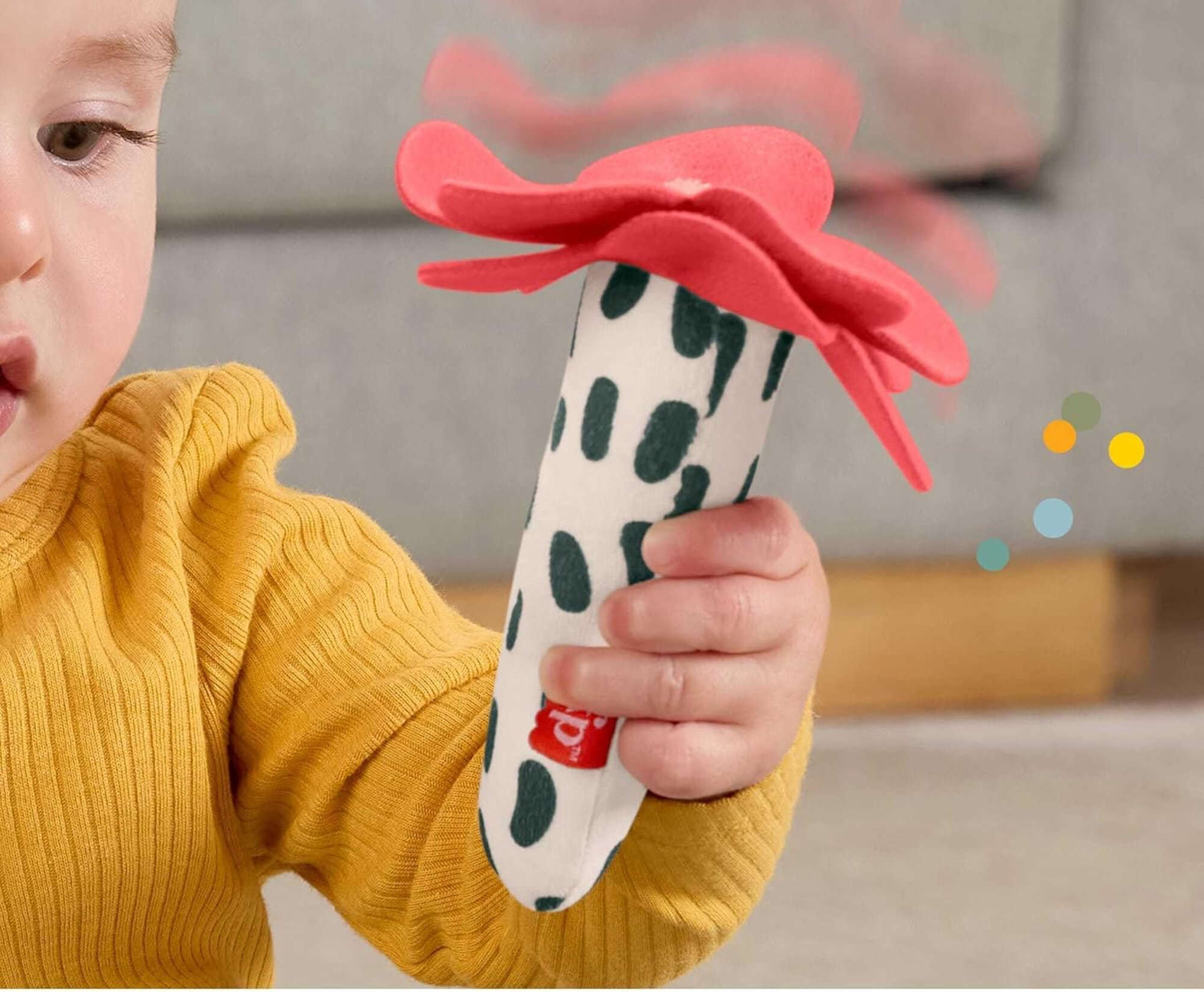 Fisher-Price Planet Friends Shake ‘n Rattle Busy Bee to zestaw dwóch uroczych, pluszowych grzechotek zaprojektowanych z myślą o najmłodszych. Dzięki starannie dobranym materiałom i różnorodnym fakturom zabawka wspiera rozwój sensoryczny malucha, jednocześnie promując ekologiczną odpowiedzialność – tkaniny wykorzystane w produkcji pochodzą w 74,98% z przetworzonych tworzyw sztucznych.