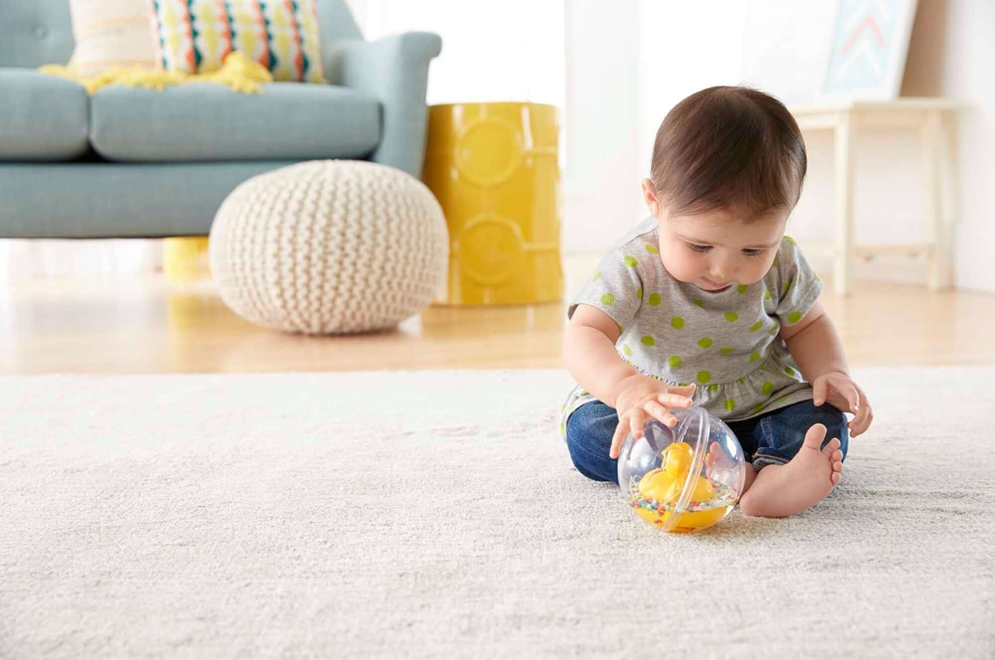 Ta kolorowa zabawka obudzi ciekawość dziecka, które będzie mogło obserwować uroczą żółtą kaczuszkę poruszającą się wewnątrz przezroczystej kuli.