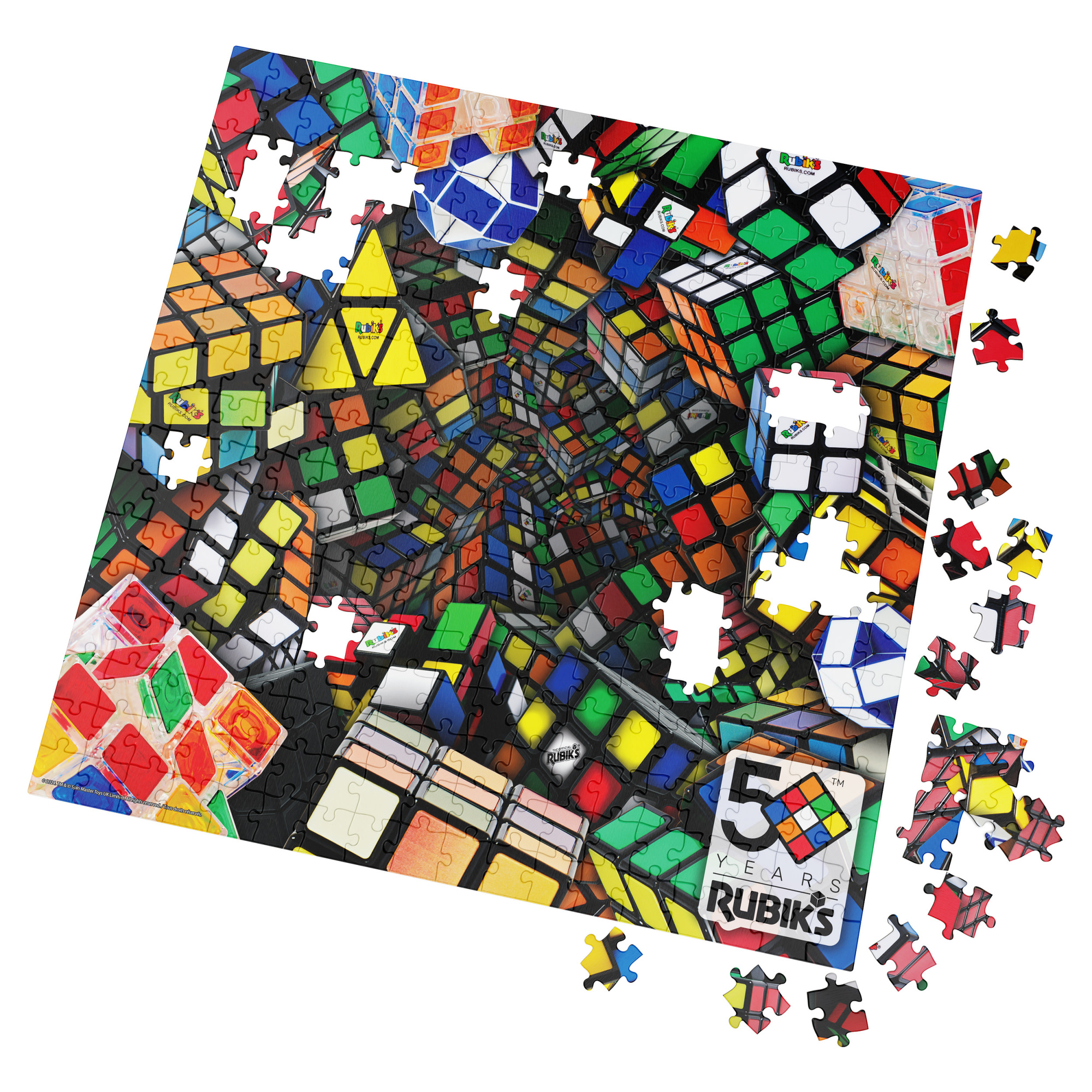 Świętuj 50-lecie Kostki Rubika w niebanalny sposób! Ten wyjątkowy zestaw puzzli prezentuje setki ułożonych kostek Rubika. Po ułożeniu stworzysz obraz o wymiarach 20” x 20”, który będzie doskonałą dekoracją do powieszenia na ścianie lub oprawienia w ramkę.