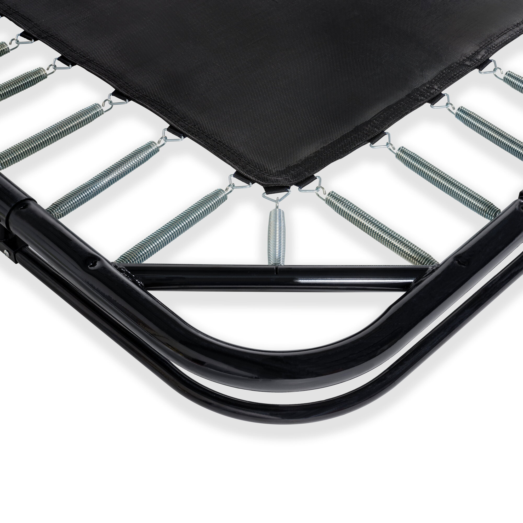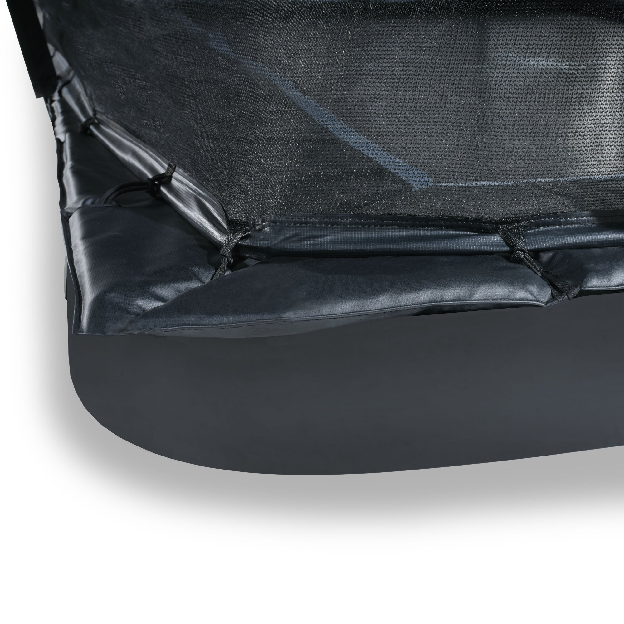 Trampolina Dynamic wyróżnia się eleganckim, matowym wykończeniem w kolorze czarnym, które harmonijnie komponuje się z otoczeniem. Dzięki swojej konstrukcji montowanej na poziomie gruntu trampolina nie dominuje w ogrodzie, pozostając stylowym i funkcjonalnym dodatkiem do przestrzeni rekreacyjnej.