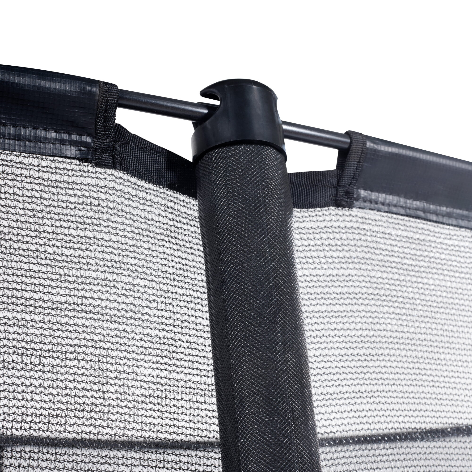 Wysokie skoki wymagają odpowiedniego zabezpieczenia, dlatego trampolina Dynamic została wyposażona w siatkę ochronną z automatycznie zamykającym się wejściem, które eliminuje ryzyko przypadkowego wypadnięcia. Dwa pierścienie z włókna szklanego utrzymują siatkę w stałym napięciu, a słupki pokryte są grubą warstwą pianki ochronnej, zwiększając komfort i bezpieczeństwo użytkowania.