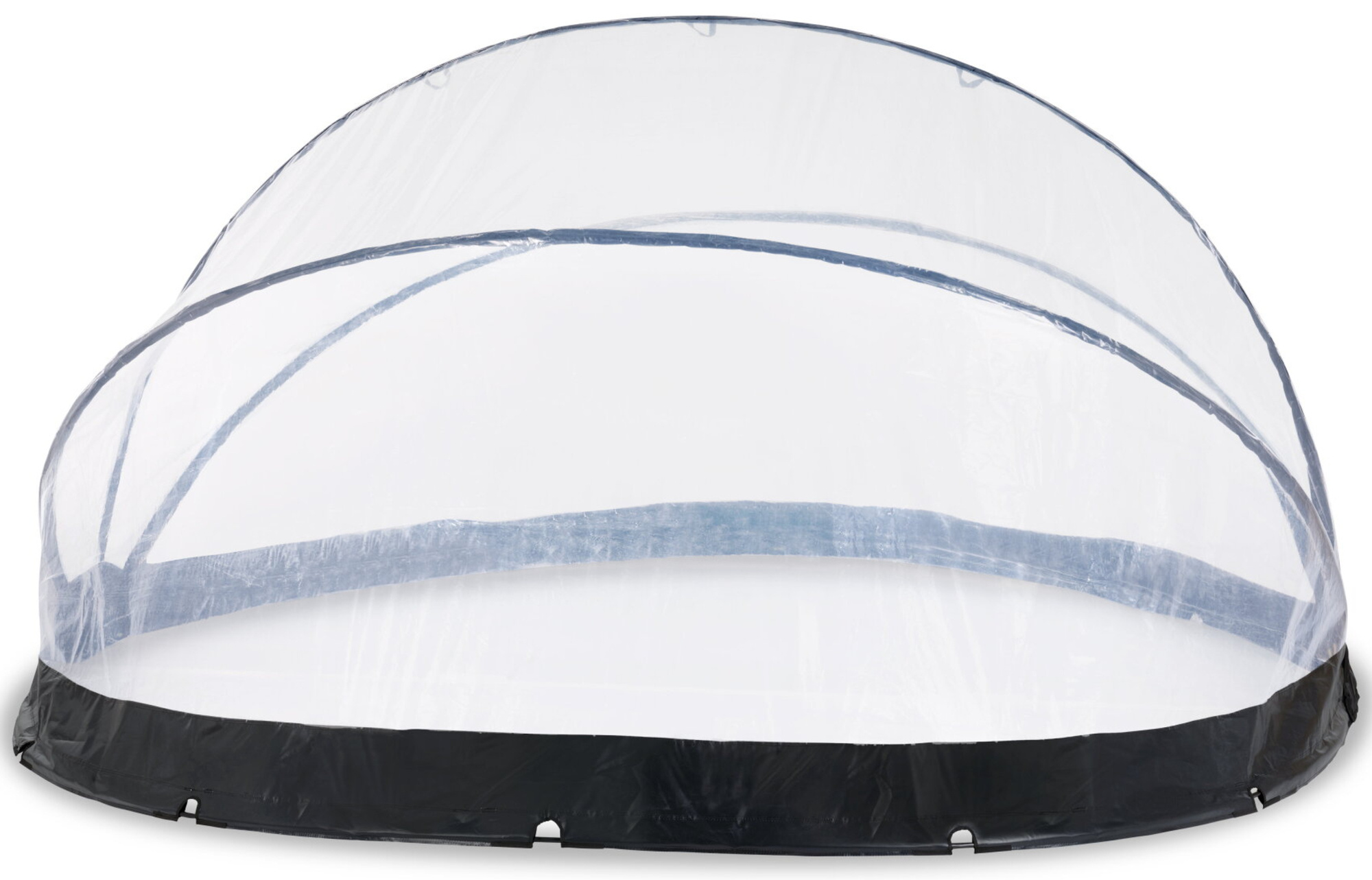 - Kopuła zapewniająca zadaszenie nad basenem pozwoli na osłonięcie tafli wody przed nieczystościami podczas korzystania z niego, jak i pomiędzy sesjami w basenie.