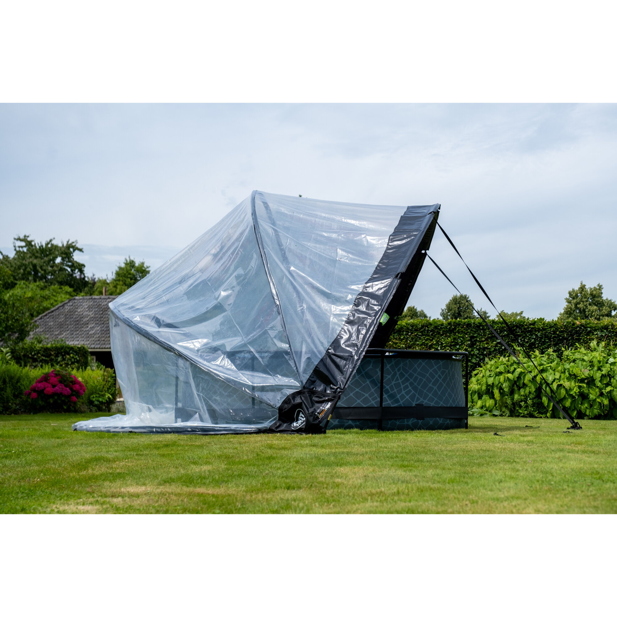 Niezależnie od tego, czy Twój basen znajduje się na trawie, tarasie, czy betonowym patio, kopułę ECO można łatwo przymocować. W zestawie znajdują się kotwy gruntowe, które zapewniają dodatkową stabilność na miękkich powierzchniach, a dla twardych podłoży dostępne są dedykowane materiały montażowe. Montaż kopuły jest szybki i intuicyjny – wystarczą dwie osoby, aby w kilka chwil cieszyć się osłoniętym basenem.