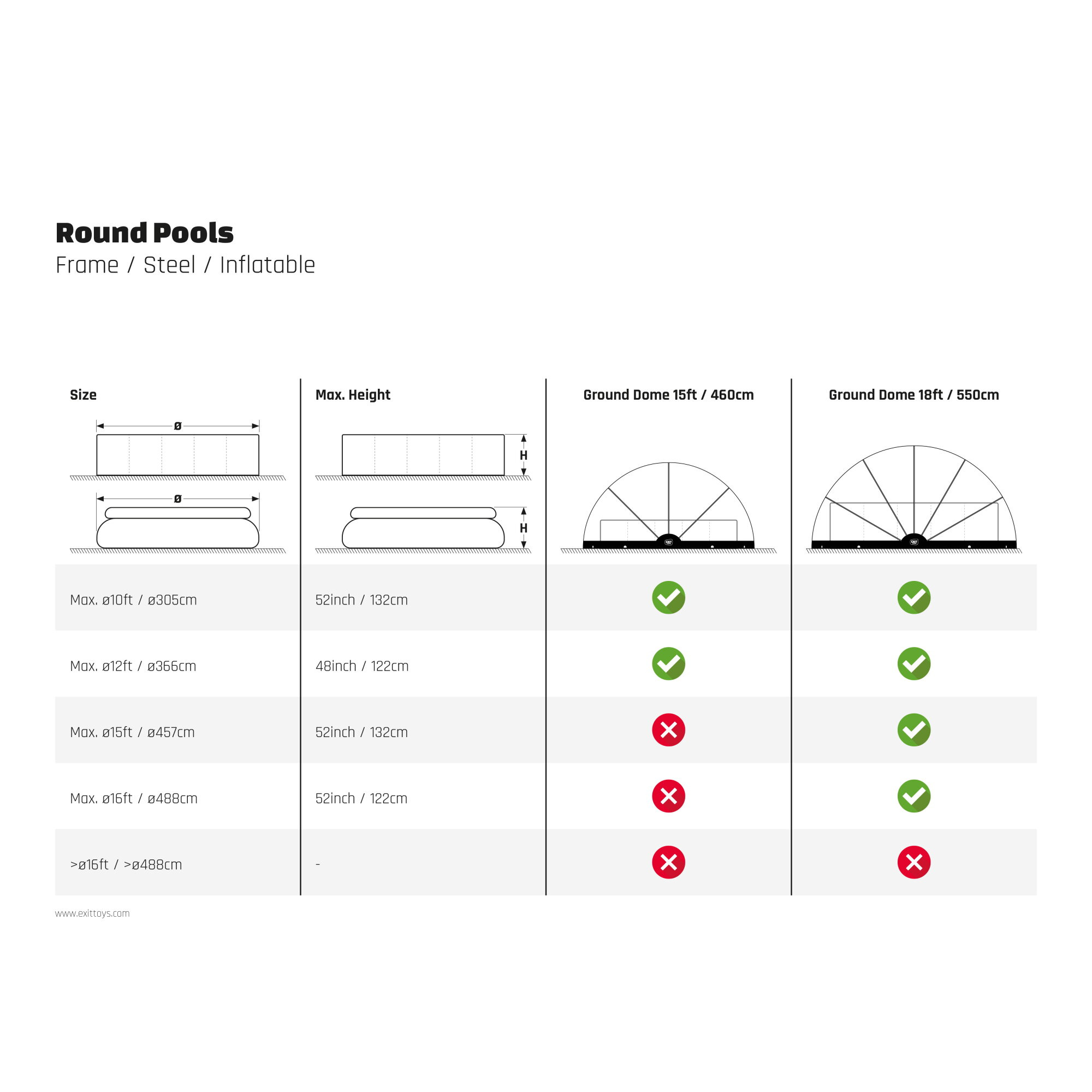 Model ECO o średnicy 550 cm to idealne rozwiązanie dla różnorodnych basenów naziemnych. Kopuła nie montowana bezpośrednio na basenie, lecz umieszczona na ziemi, pozwala na swobodne użytkowanie basenu oraz skutecznie osłania taflę wody przed niepożądanymi zanieczyszczeniami. Dzięki temu, gdy basen nie jest używany, łatwo zabezpieczysz wodę przed brudem, korzystając z dołączonych pasków mocujących.