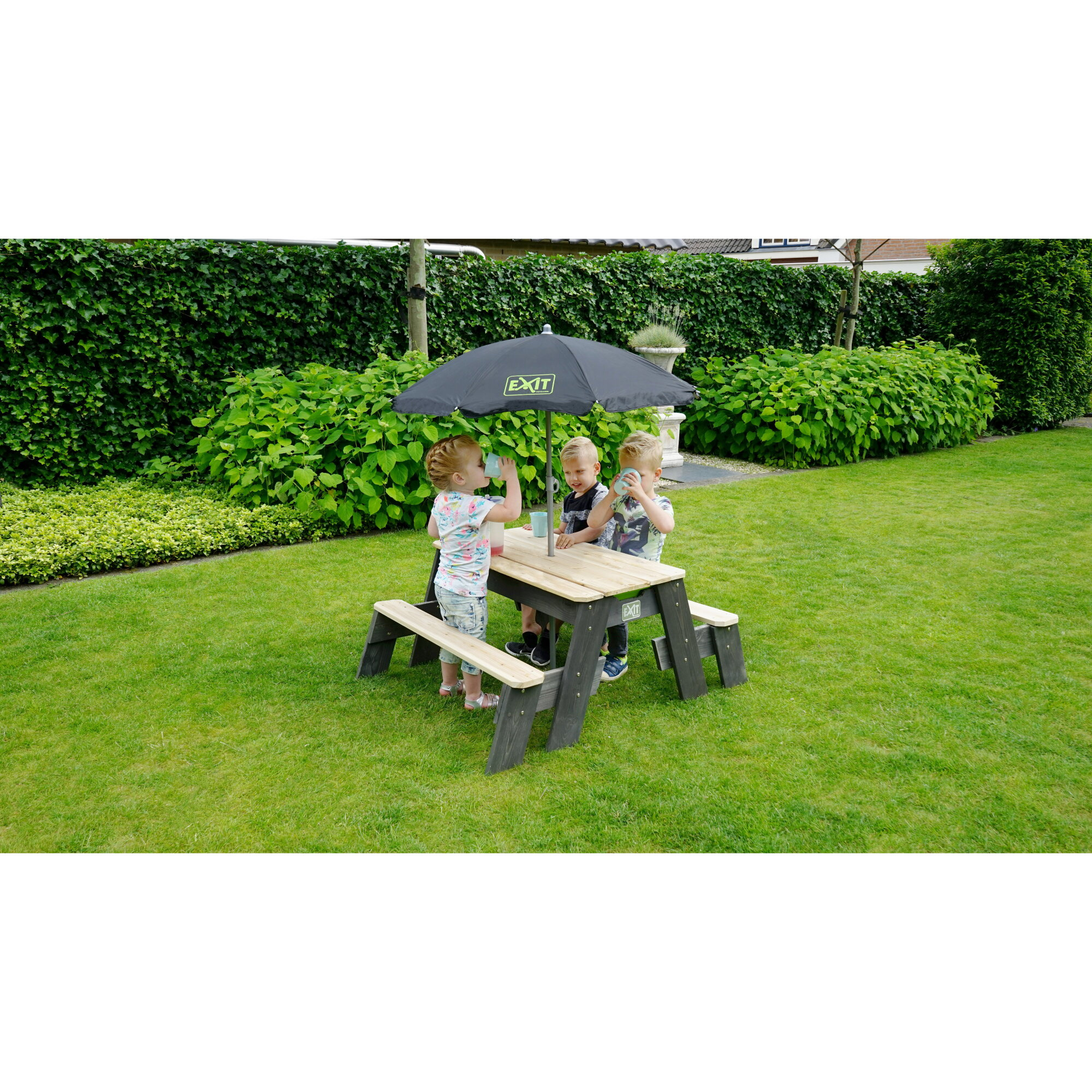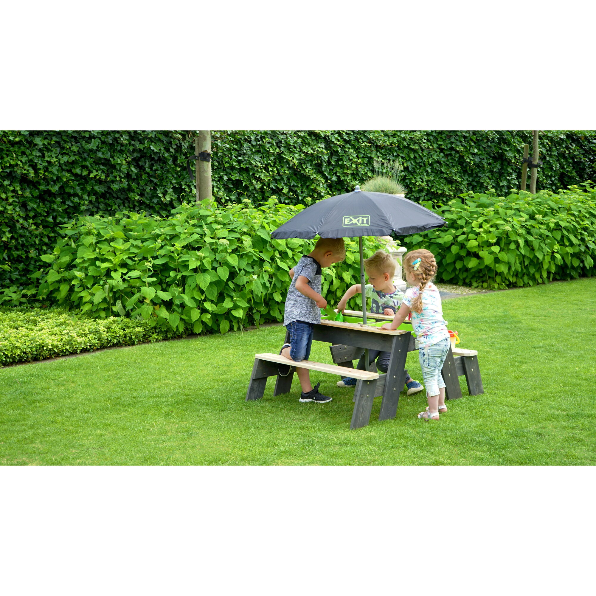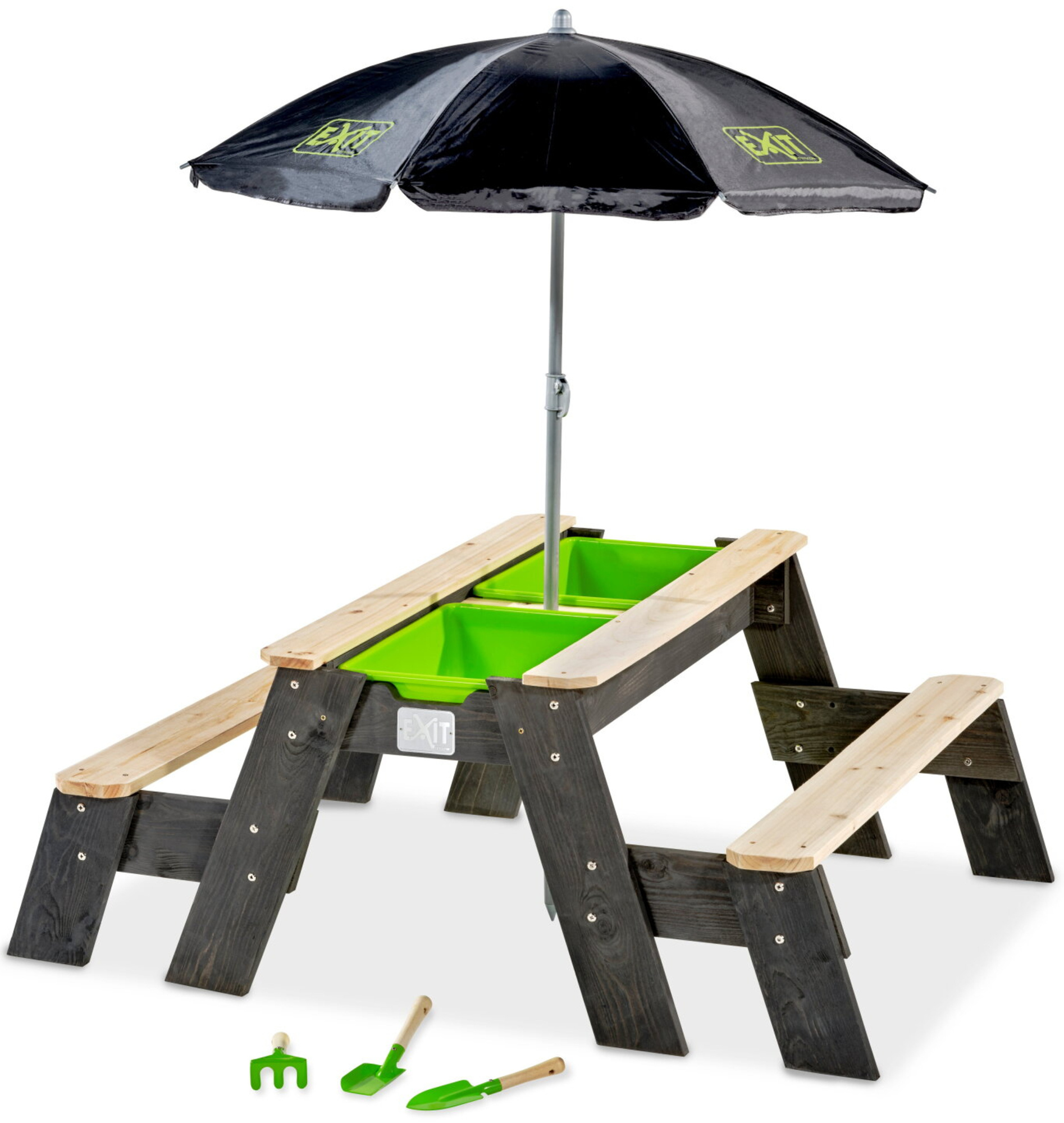 EXIT Aksent Stół do wody i piasku z dwoma pojemnikami i podwójnym siedziskiem parasolem i narzędziami ogrodniczymi