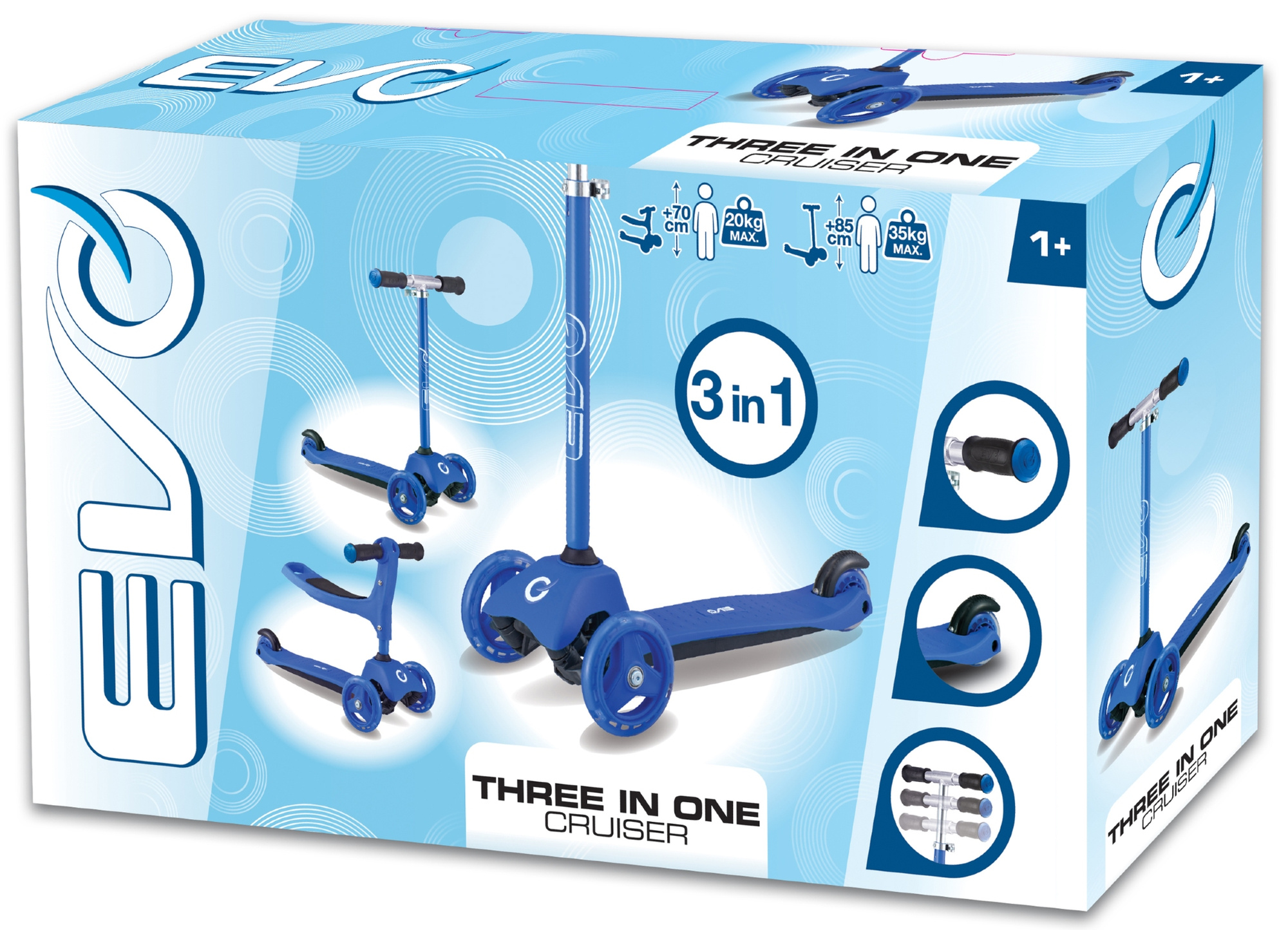 Evo Regulowana Trójkołowa Hulajnoga dla Dzieci 2w1 Jeździk Cruiser z Siedziskiem Niebieski