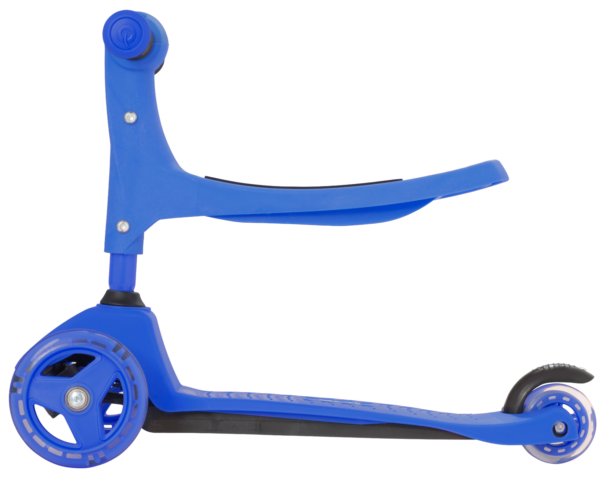 - Wielofunkcyjny: Hulajnoga została wyposażona w mechanizm umożliwiający wymianę normalnej kierownicy na tą z siedziskiem. Wówczas pojazd może być użytkowany przez zarówno najmłodszych, jak i przez starsze dzieci.