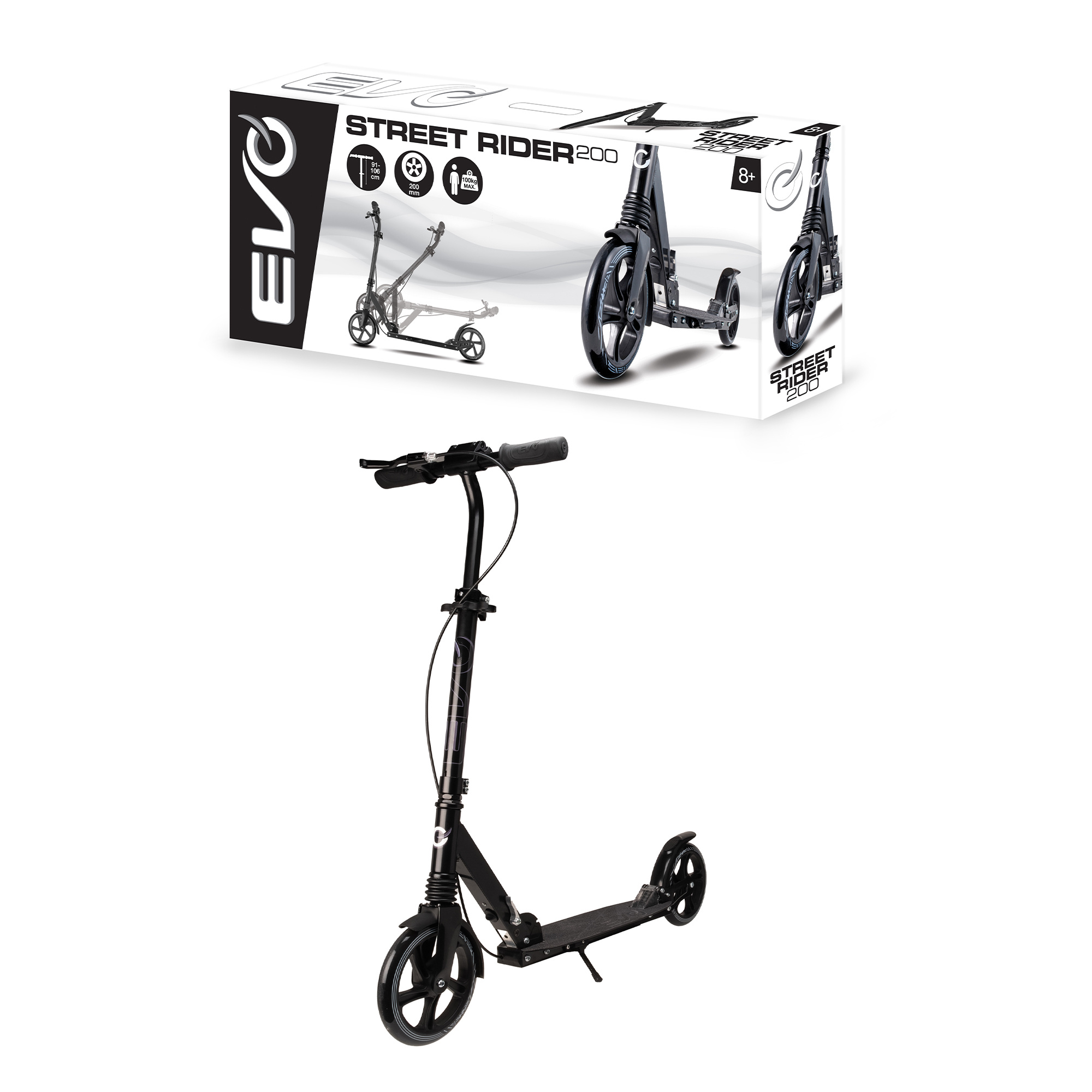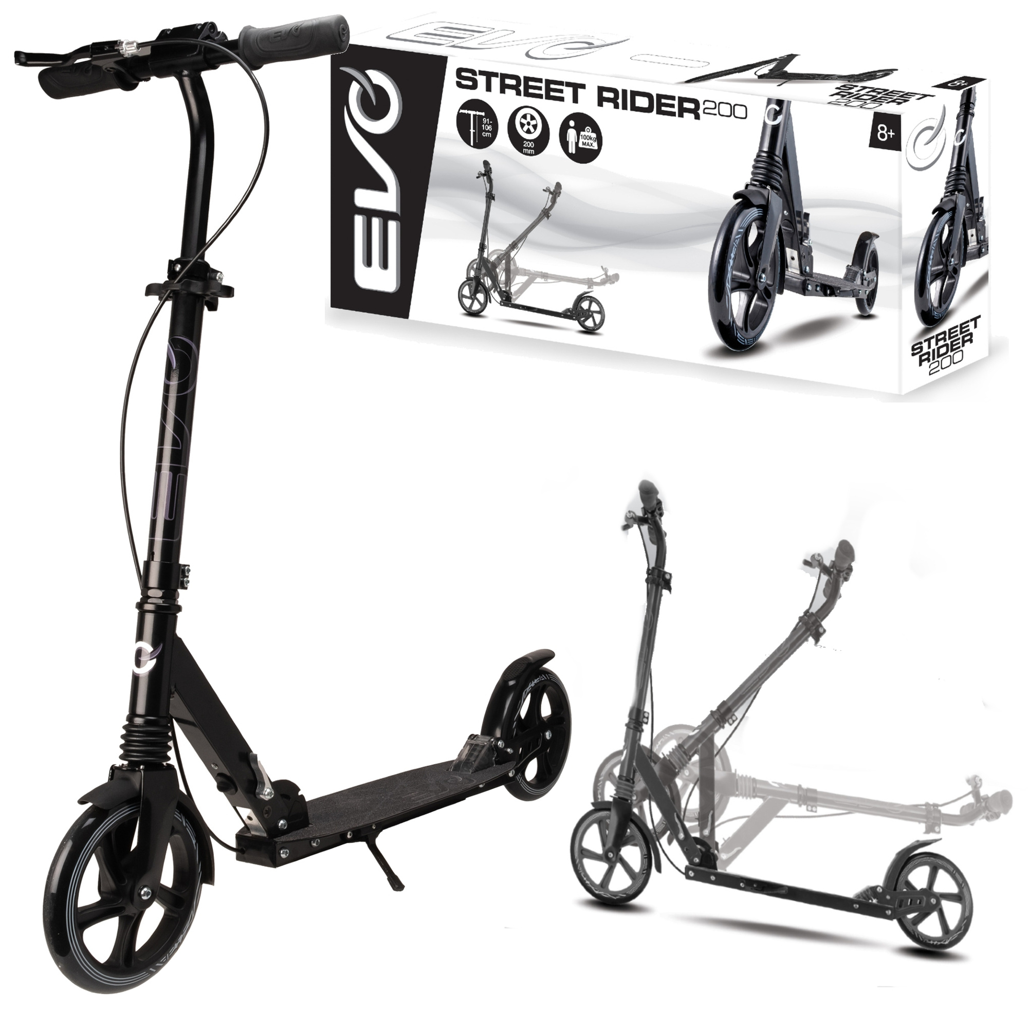 Evo Składana Dwukołowa Hulajnoga Street Rider 200 Czarna ze Stopką 8+